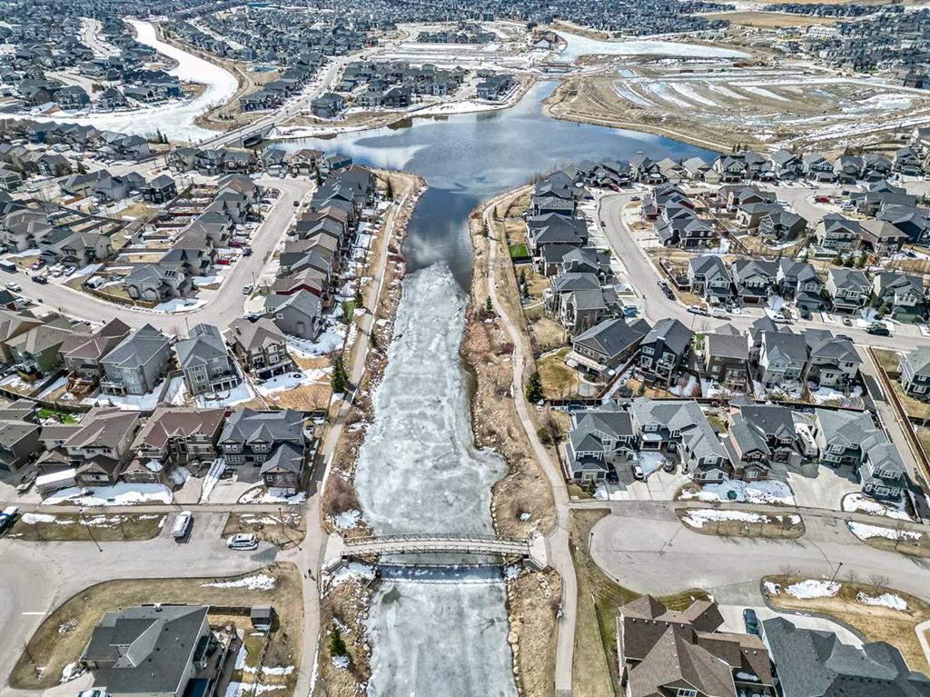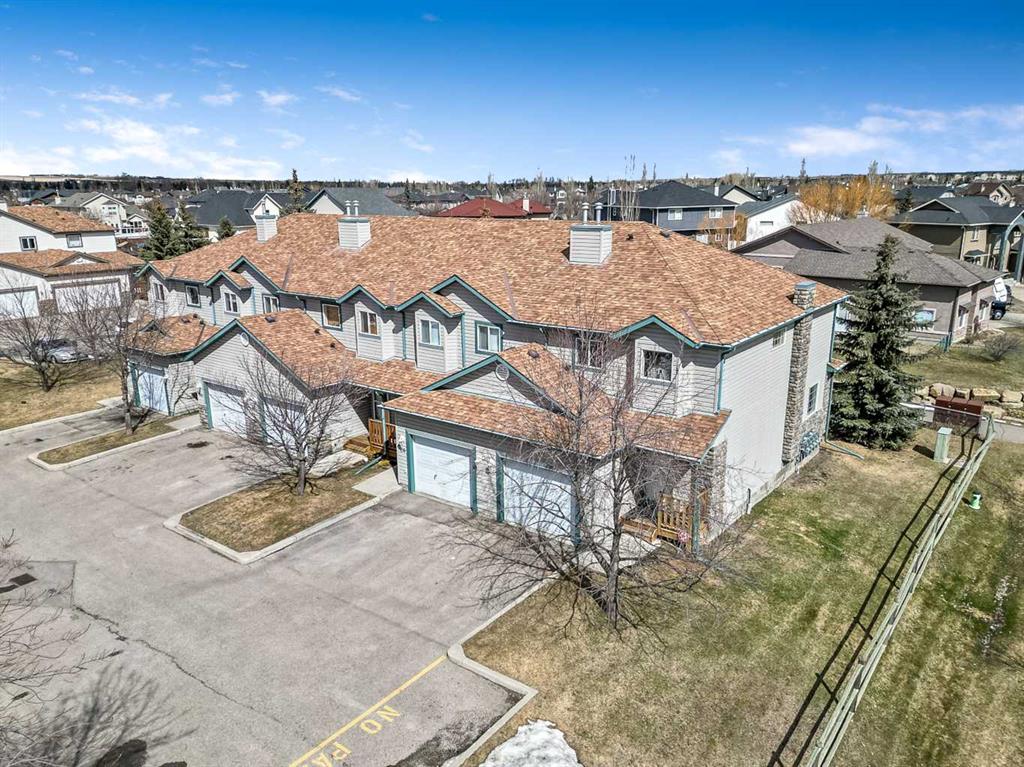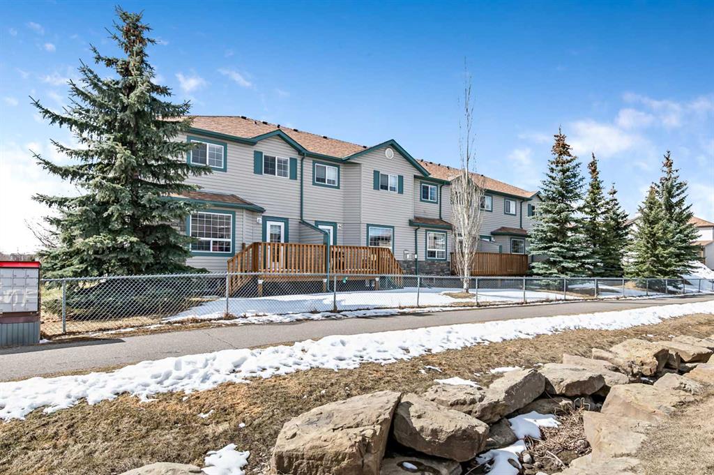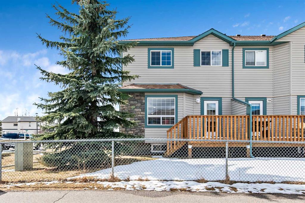 Welcome Home! This beautifully updated 1,342 sq. ft. two-storey townhome is located in the highly sought-after community of Canals in Airdrie. As an end unit backing onto a peaceful greenbelt and pathway system, this home offers both privacy and an abundance of natural light. Step inside to a spacious foyer that opens to a bright and inviting main floor, featuring brand new laminate flooring throughout. The kitchen has been tastefully refreshed with a new fridge, range, stylish backsplash, and plenty of cupboard and counter space—perfect for both everyday living and entertaining. The cozy family room is highlighted by a charming fireplace and large windows that flood the space with light. From here, step out onto your private deck—an ideal spot for BBQs and relaxing with friends. A renovated powder room completes the main level. Upstairs, you’ll find brand new carpet throughout, leading to two generously sized primary bedrooms and a versatile bonus area—perfect for a home office or reading nook. A well-appointed 4-piece bathroom is conveniently located between the bedrooms. The fully developed basement offers even more living space, including a large flex room that can easily serve as a bedroom, a laundry area with new washer and dryer, and an additional 4-piece bathroom.
