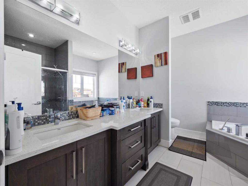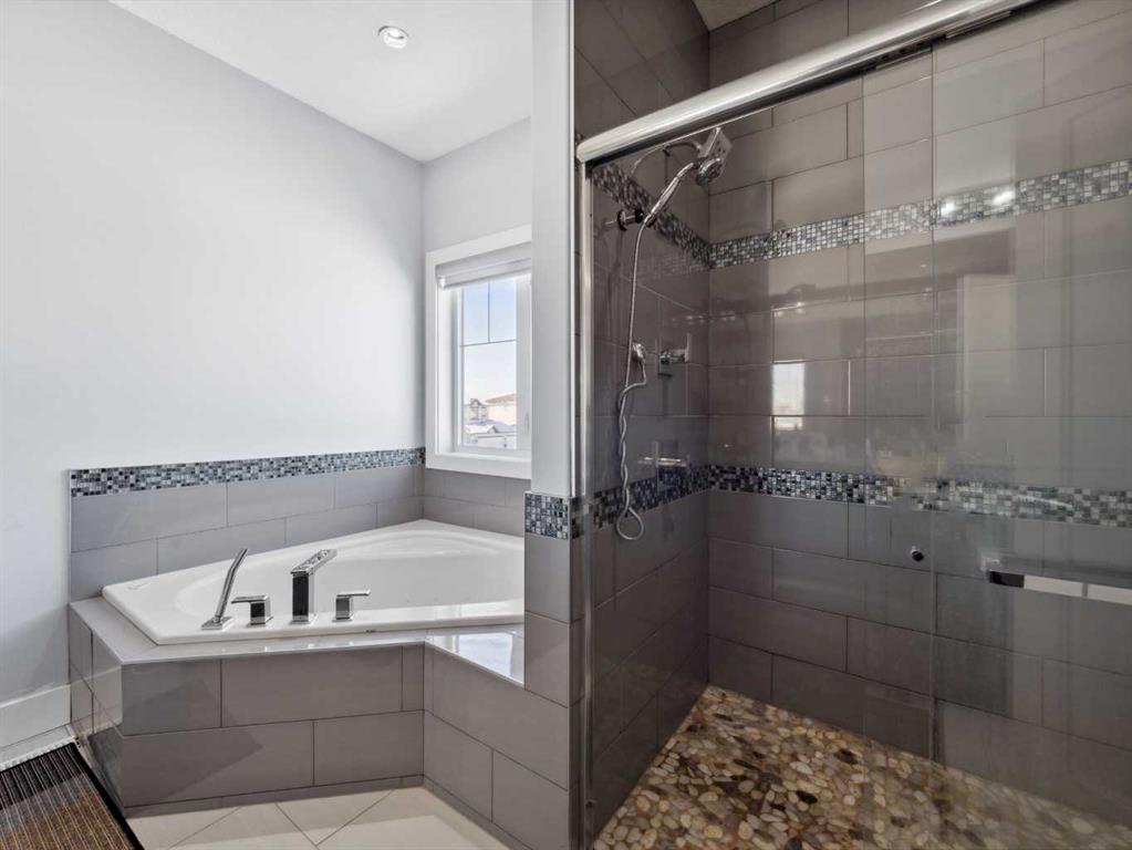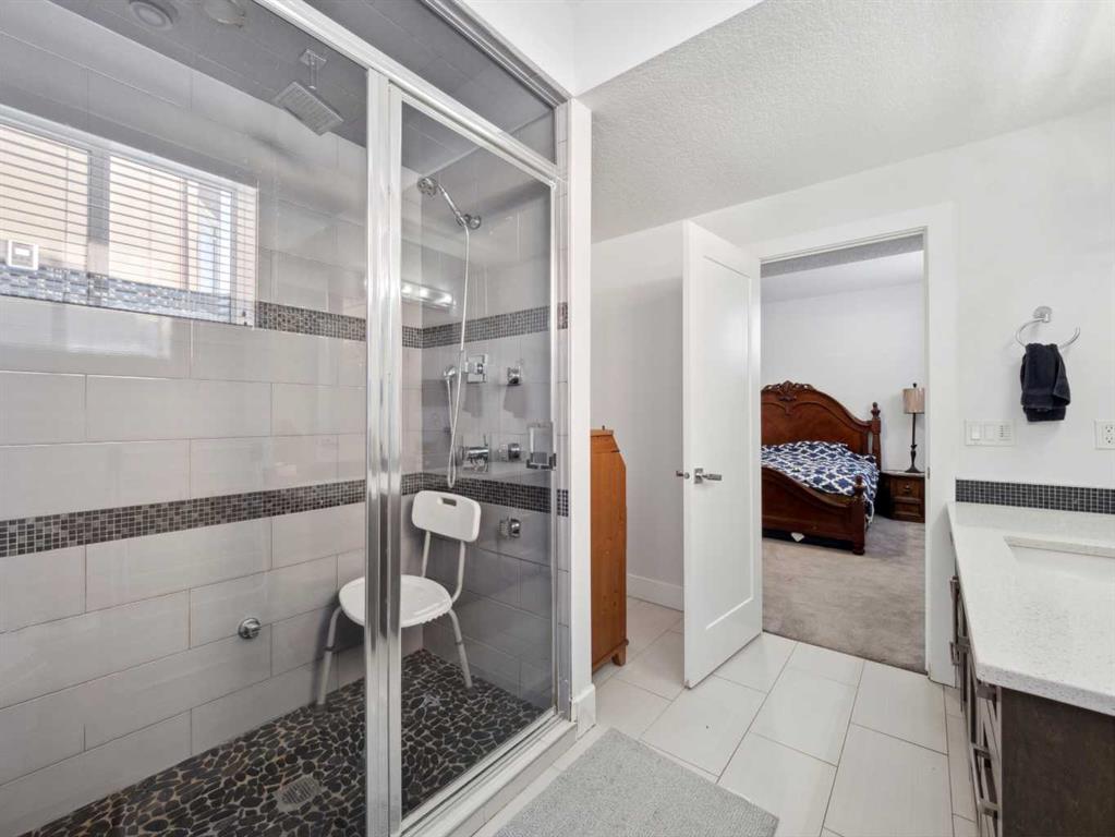 The Large basement features a SEPARATE ENTRANCE, 2 Bedrooms, Second Kitchen with counter tops, living area, Laundry and a luxurious bathroom.. and even a steam shower—creating the perfect private retreat for family or guests.