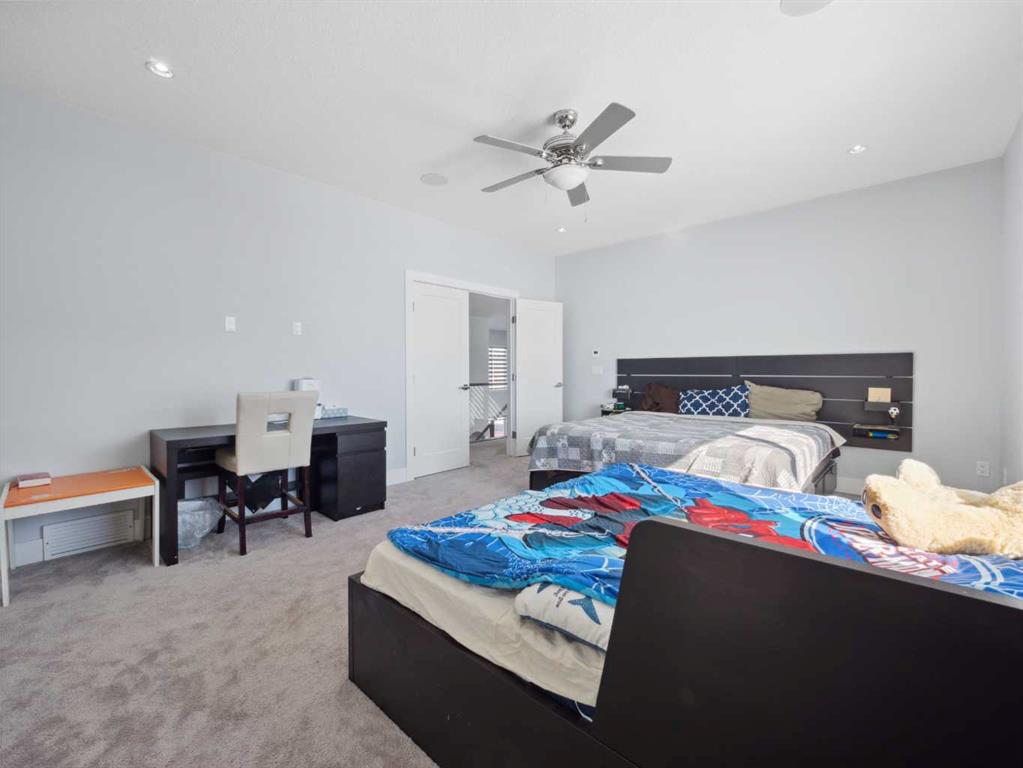 Upstairs, you’ll find four generously sized bedrooms, including two luxurious primary retreats, each complete with spa-inspired ensuites and walk-in closets. A thoughtfully designed upper level also includes a dedicated laundry room and a versatile raised-floor room ideal for prayer or meditation.