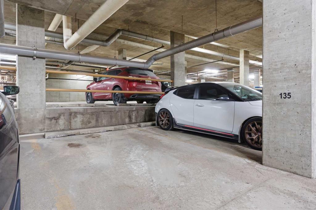 The bright and generously sized primary bedroom features dual closets and easy access to a well-appointed 4-piece bathroom. Additional conveniences include in-suite laundry with a newer washer & dryer, a titled underground parking stall, and an assigned storage space.