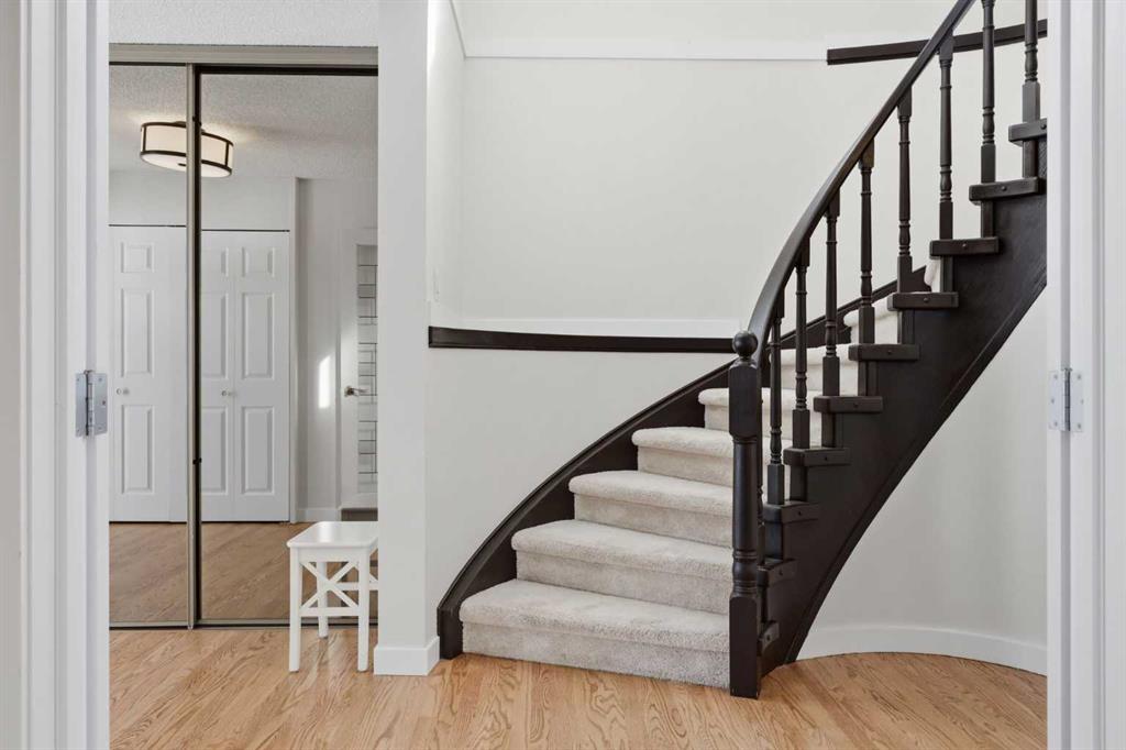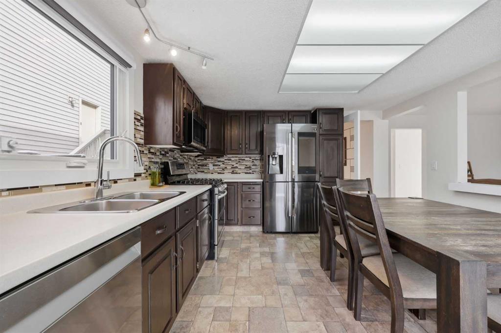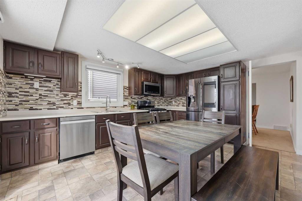 Millrise - 71 Millbank Drive SW: Welcome to this fully developed two-storey home in the desirable community of Millrise, offering nearly 3,000 sq ft of total living space. Located on a corner lot, this bright, well-appointed family home features 3 + 1 bedrooms, 3.5 bathrooms, and an attached double garage. The spacious main floor showcases hardwood flooring and a functional layout, including a living room with French doors to the front foyer, a formal dining room, and a spacious kitchen. The kitchen has stainless steel appliances, including a gas stove, plenty of room for a table, and a patio door leading to the sunny, south-facing backyard. The inviting family room is open to the kitchen and features a gas fireplace with floating shelves and a second patio door for easy backyard access. The 2-piece powder room, side door entrance, and a generous front entry complete the main level. The curved staircase leads upstairs to a large primary bedroom with double doors, a large walk-in closet, and a spacious 5-piece ensuite featuring a soaker tub, separate shower, and dual sinks. Two additional good-sized bedrooms and a 4-piece main bathroom complete the upper level. The fully developed basement offers a spacious rec room, a fourth bedroom with a walk-in closet, a 3-piece bath, and a mechanical/laundry room with sink and plenty of additional storage. Recent updates to the home include: shingles (2017), furnace (2021), windows and doors (2025), and hardwood floors refinished in 2025. Enjoy the fully fenced south backyard with a large deck and a pergola. Ideally located close to schools, parks, and recreation, including Our Lady of Peace K–9 School, Millcrest Park, Crocker Park, and the Millrise outdoor rink. Enjoy convenient access to the many shops, restaurants, and amenities in Shawnessy, as well as easy commuting via Macleod Trail, Stoney Trail, and the Somerset LRT Station. This turn-key shows pride of ownership and is ready for you to move in and enjoy.