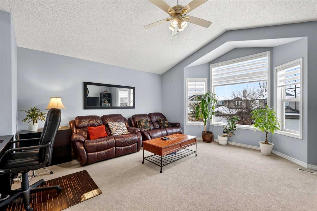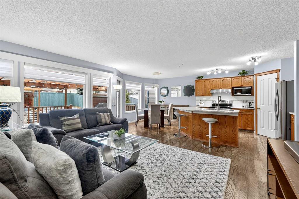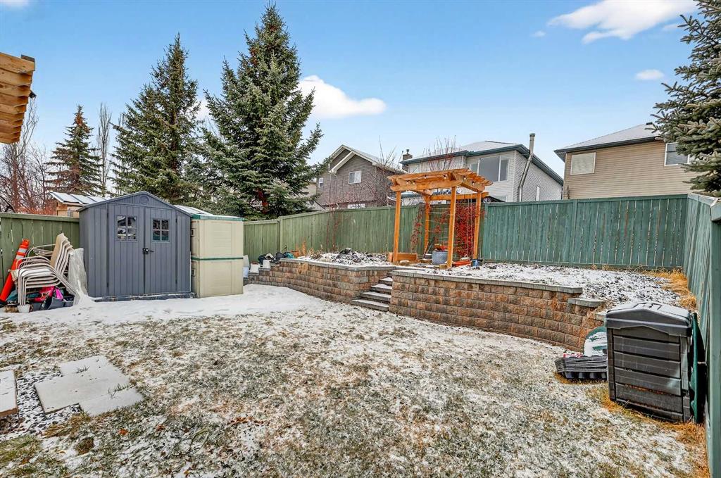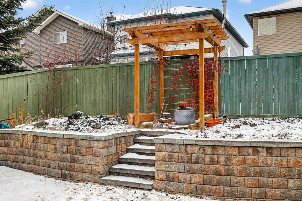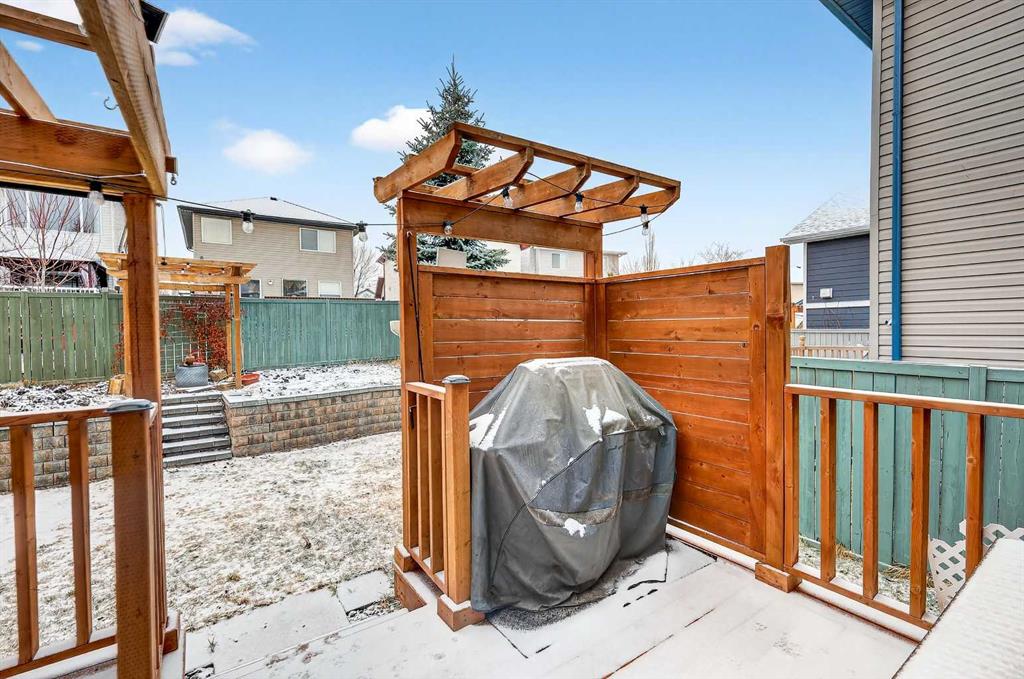 Welcome to the heart of Bridlewood—where community, comfort, and connection come together. Nestled in a neighbourhood where families plant roots and grow for years to come, this beautifully maintained and thoughtfully updated 2-storey home offers the perfect blend of warmth, function, and everyday living. Ideally located within walking distance to schools, parks, and scenic pathways, this is a home designed for both convenience and lasting memories. Step inside to a bright and inviting main floor, where a well-designed open concept layout brings the whole family together. Rich engineered hardwood flooring flows seamlessly throughout, complemented by fresh interior paint and timeless finishes. The kitchen has been tastefully refreshed with stunning quartz countertops, a flush eating bar, undermount sink, updated faucet, and sleek stainless steel appliances. Warm oak cabinetry adds character and depth, while a corner pantry ensures practical storage. The dining area is anchored by a charming bay window that fills the space with natural light and overlooks the beautifully designed backyard. It transitions effortlessly into the spacious living room, where a large feature window frames views of your outdoor retreat. A convenient 2-piece bath and a separate laundry room tucked off the mudroom complete the main level. Upstairs, a generous bonus room awaits—featuring an impressive ~11-foot vaulted ceiling, a second bay window, and a cozy gas fireplace with wood mantle and tile surround. This is the ultimate setting for movie nights, game days, or simply unwinding at the end of the day. The upper level also hosts three well-sized bedrooms, including a spacious primary retreat designed to accommodate a king-sized bed, complete with a walk-in closet and a private 4-piece ensuite featuring a deep soaker tub and separate shower. An additional full bathroom serves the secondary bedrooms. The partially finished basement expands your living space even further, offering a fourth bedroom and a large family/recreation area—ideal for a growing teen, guests, or extended family stays. Step outside and discover a backyard built for enjoyment. A large deck, stunning pergola, and thoughtfully designed two-tiered yard create the perfect setting for entertaining, relaxing, and gardening. This outdoor space truly elevates the home and invites you to enjoy Calgary’s seasons to the fullest. Living in Bridlewood means being surrounded by amenities—shopping, restaurants, theatres, and quick access to Stoney Trail and Macleod Trail. You’re also just minutes from the YMCA, public library, and the world-renowned Spruce Meadows, offering year-round events, concerts, and the magical Christmas Market. This is more than a home—it’s a place to grow, gather, and create lasting family memories.