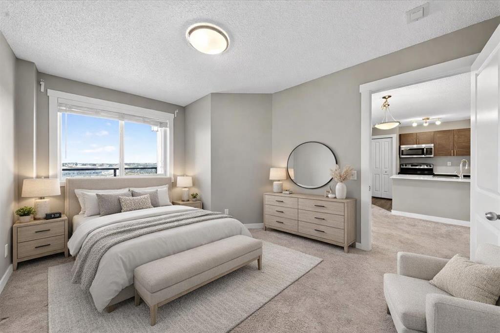 Is there a 2 bed condo in NW Calgary with privacy, natural light, and concrete construction? This unit delivers with bedrooms on opposite sides, east-facing unobstructed skyline views, and titled heated underground parking, offering flexibility for roommates, guests, or work from home needs.