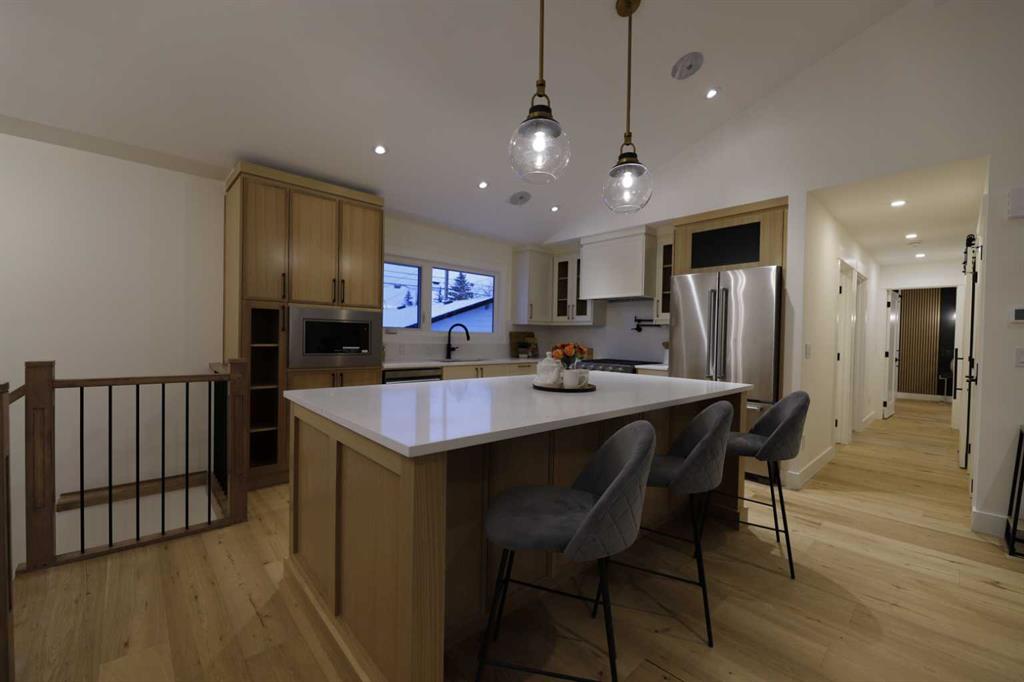 LARGE LOT | RENOVATED INSIDE AND OUT | BRIGHT & SPACIOUS | MODERN OPEN CONCEPT | 4 BEDS & 3 FULL BATHS | GYM | WET BAR | NEW AIR CONDTIONER | HEATED ENSUITE FLOOR | STEAM SHOWER | OVERSIZED DETACHED GARAGE.Welcome to your dream home in the sought after community of Lake Bonnavista! Fantastic location situated on a Large lot and walking distance to St.Boniface School and Lake Bonnavista School. This stunning home is completely remodeled with unlimited upgrades and features, with all the city permits and Engineer consultation, to give you the warmth of a home .Bright and spacious main floor with vaulted ceiling features a large front window which gives you plenty of sunlight and features a modern open concept with a living room, a cozy fireplace & a dining room. The brand new , elegant and tastefully designed kitchen is a dream for anybody and includes a large center island, premium quartz countertops, stainless steel appliances, gas range , and a lot of storage space,and above all a security camera screen for your security. The Oak railing adds more to the beauty of this home. Moving further, you are greeted with a primary bedroom with an attached 5 piece ensuite/w steam shower and walk in closet with lot of storage space for his and her. There is another good-sized room with a pocket door to the 4 Pc common washroom and a stackable laundry on the main floor for added convenience. The lower level has a large family room, a wet bar with fridge and a large gym with rubber floor. 2 additional bedrooms and a full washroom complete this floor. To add to all this, all the rooms in the basement have legal-size windows for added light. All new concrete in the front and back. The list goes on with a new hot water tank, roof shingles, siding, hardwood flooring , carpet, new plumbing,new electrical,etc etc . A must-see home.....Please call your realtor and book your showing.