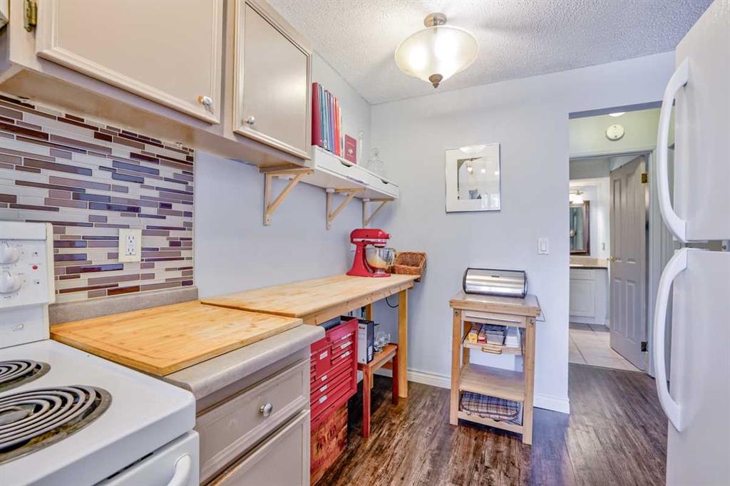 Enjoy WALK-OUT easy main-floor living in this bright bungalow-style unit set within a well-located stacked townhouse complex in Parkhill. Sunlight pours through oversized west-facing windows, filling the living area with warmth while creating a welcoming space suited to both quiet evenings and time with guests. Easily prepare meals in the kitchen where a window draws in additional light, a full-height backsplash adds visual interest and space for a table allows casual dining without compromise. Daily routines feel effortless with durable laminate and tile flooring throughout, eliminating carpet while simplifying maintenance. Recharge in the spacious bedroom that accommodates comfortable furniture placement while remaining close to the 4-piece bathroom for convenience. Step outside to a private covered patio that extends into a grassy yard area, offering a rare outdoor setting ideal for morning coffee or unwinding at the end of the day. Condo fees remain exceptionally affordable at $216 per month, covering nearly all utilities and keeping monthly costs predictable, with only electricity billed separately. Free common laundry adds everyday convenience, while the oversized in-suite storage area accommodates the option for future washer and dryer hookups. Parking remains simple with an assigned off-street #2 stall positioned for easy access. Phenomenally located within walking distance to the Elbow River and experience Stanley Park, where pathways, sports fields, tennis courts, picnic areas, a toboggan hill, outdoor pool and skating rink support an active lifestyle throughout the seasons. Continue on foot to Mission, where cafés, restaurants and shops bring everyday convenience alongside vibrant inner-city energy or stay closer to home with endless amenities mere steps away on MacLeod Trail. Move through daily life with ease in a location that connects nature, amenities, and downtown access within minutes.