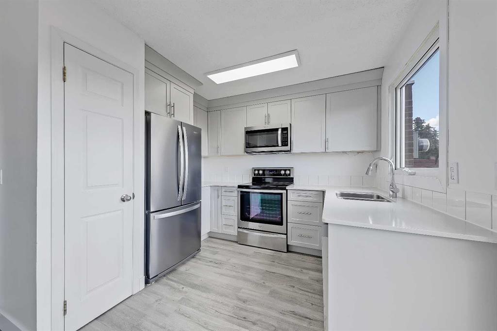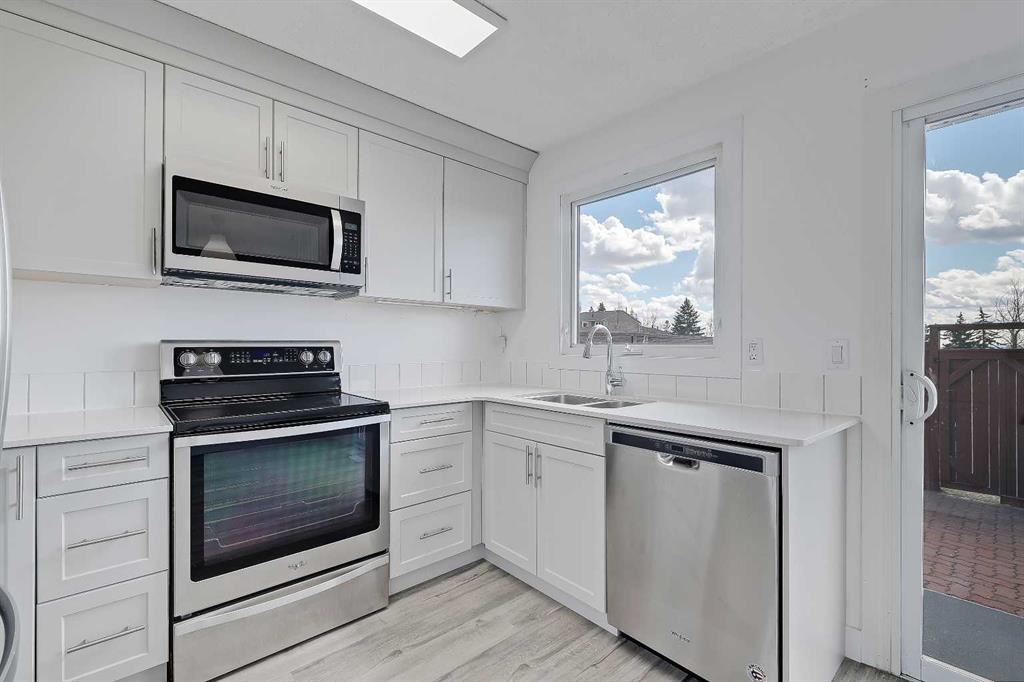 Incredible opportunity in Glenbrook for a RENOVATED, END-UNIT townhome backing directly on to a PARK and PLAYGROUND with a PRIVATE South-facing backyard! This is the perfect blend of private outdoor living and convenience, all in a PET-FRIENDLY complex. The main floor is bright and inviting, featuring expansive windows and new luxury vinyl plank (LVP) flooring throughout. The renovated kitchen features all new cabinetry, sleek quartz countertops, and stainless-steel appliances, and offers direct access to the private, fenced South-facing backyard, complete with a brick patio and storage shed. Updates continue upstairs, with new LVP flooring throughout, and a fully updated main bathroom. Two spacious bedrooms are found here, one of which enjoys fantastic views of the backyard and the adjacent green space. The basement is unspoiled and ready for future development, offering flexibility for additional living space, recreation, or storage. Located in a well-managed condo complex with reasonable condo fees, where recent exterior upgrades have been completed, including new windows, doors, siding, and concrete sidewalks. Located in the heart of the sought-after SW community of Glenbrook, this home boasts a fantastic location right across the street from Glenbrook Park. Residents enjoy walking access to excellent schools, including Glenbrook School and Glenbrook Preschool, making day-to-day life effortless for families. Parks, playgrounds, and green spaces are woven throughout the neighbourhood, while nearby Optimist Athletic Park and Glenbrook Community Association offer year-round recreation. Everyday conveniences are just minutes away with Westhills and Signal Hill shopping centres close by, along with local cafés, grocery stores, and essential services. With quick access to major roadways, transit routes, and a short commute to downtown, Glenbrook offers the perfect balance of quiet residential living and connected urban living.