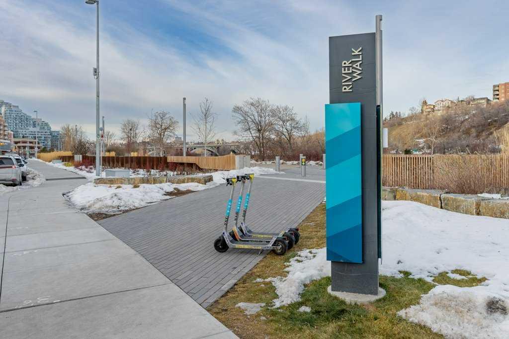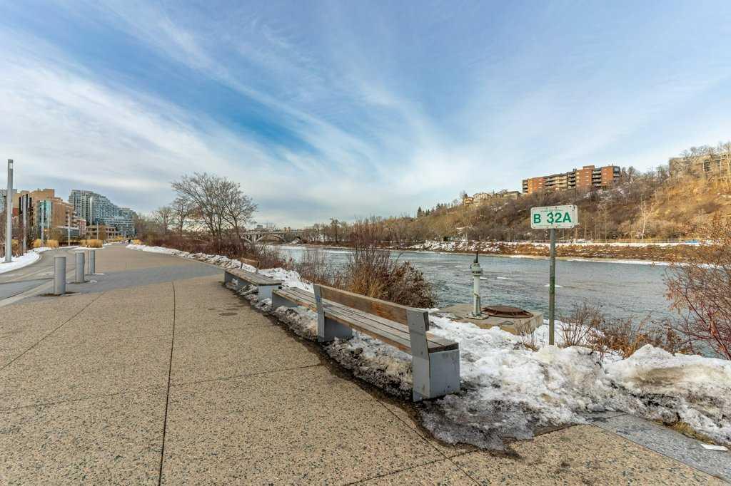 Welcome to downtown living at its best in Calgary’s vibrant East Village! Perfectly positioned just steps from the Bow River pathway system, this one-bedroom condo offers unbeatable access to year-round outdoor living—whether it’s biking, jogging, or enjoying scenic river walks right outside your door. Located only minutes from Eau Claire and Calgary’s core amenities, this is an ideal opportunity for first-time buyers looking to enter the market or investors seeking a highly rentable, walkable location. Inside, the bright and modern open-concept layout features 9-foot ceilings and large windows that fill the space with natural light. The kitchen is designed for both function and style, complete with granite countertops, ample cabinetry, and a convenient eat-in area—perfect for everyday living or entertaining. Step out onto your sunny south-facing balcony, offering a great space to relax and take in the energy of downtown. Additional highlights include in-suite laundry for added convenience. The well-managed building offers secure underground parking, visitor parking, two elevators, a garbage chute on every floor, and a resident gathering space—making this a true low-maintenance, lock-and-leave lifestyle. Whether you're investing or buying your first home, this is your chance to own in one of Calgary’s most walkable, nature-connected communities. Book your private showing today!