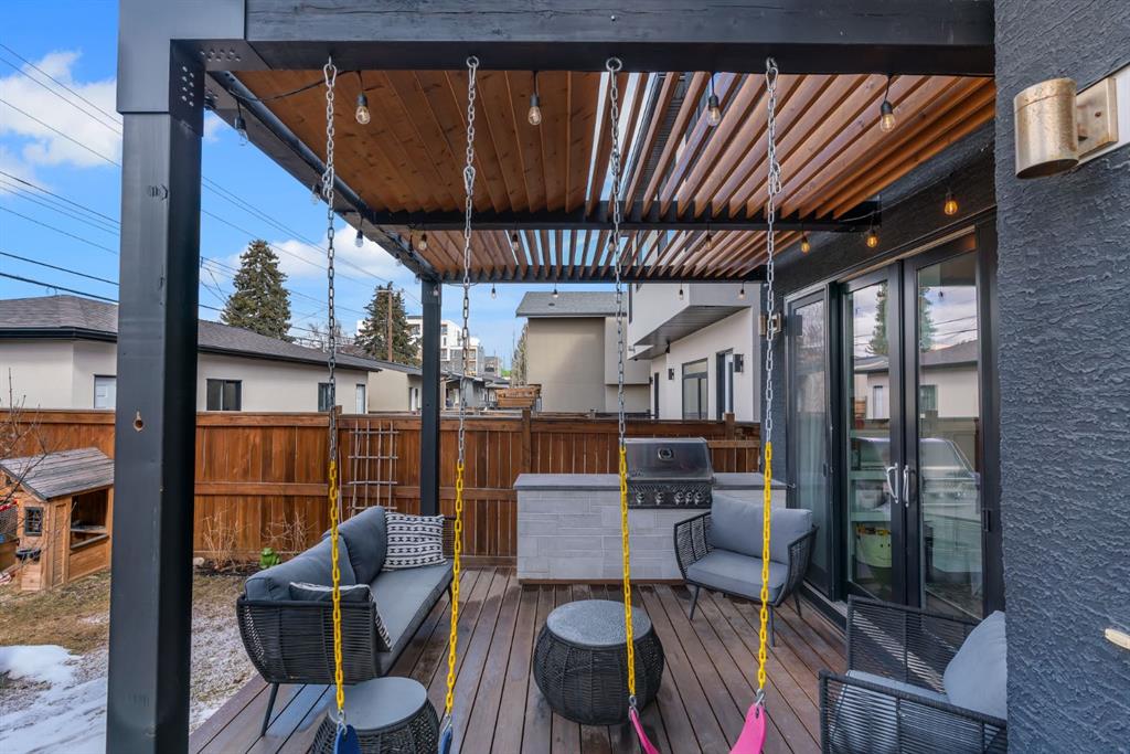 Step outside to a beautifully designed west-facing backyard, ideal for evening entertaining. Enjoy custom landscaping, a built-in BBQ, and a stunning pergola over a rich Balau hardwood deck with integrated planter.
