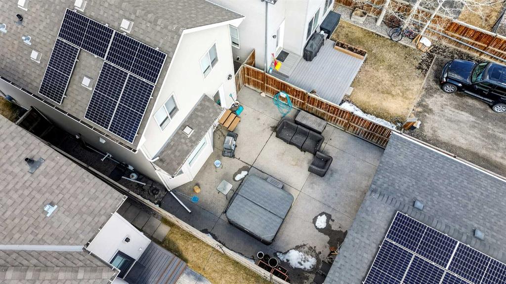 Jewel of a Deal — Let the Sun Pay the Bills!!! Big DOUBLE Car Garage! Convenient Location - Steps away from the Century Hall, ponds, Ice rink, parks, pathways, schools, shopping, transit, South Health Hospital, Seton YMCA, and the new exits. A wonderful URBAN STYLE HOME with many upgraded features, 16 (7.28K) Solar Panels, & meticulously crafted by the original owner - Truly a custom dream home - Supersized homesite! Over 1372+ SF of air-conditioned living space offering 3 bedrooms, 2.5 baths & detached 22 x 22 garage with paved rear lane access ... Check out the floor plan! This OPEN design features tile, carpet and hardwood floors throughout and a Spectacular CHEF's kitchen overlooking the dining area and great room. Upgraded Fit & Finish features include granite countertops, a newer hot water tank, a newer stacked LG washer/dryer, a whole-home water softener system, an exposed-aggregate front walkway, a 28' x 28' concrete patio, and more! The kitchen is masterfully designed for efficiency and entertaining (wood-shaker-style doors & trim), upgraded appliances, a newer OTR microwave, a corner pantry, a tiled backsplash, a dramatic central island with an eating bar for 2 & an undermount black granite sink. Upstairs includes an oversized primary bedroom with a full en suite and a walk-in closet, as well as two spacious secondary bedrooms with open east-facing views of the backyard. Other impressive features include a workshop in the fully insulated and drywalled garage with additional storage, an unfinished basement, a fully fenced backyard with a sunny, private setting, and a covered front entry. Quick possession date! Call your friendly REALTOR(R) to book a viewing!