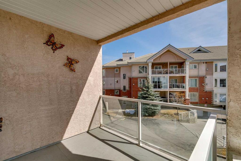 Welcome to this beautifully maintained 2 bedroom plus condo in the highly sought-after 40+ adult-living community of Sierras of Tuscany. Offering a perfect blend of comfort, space, and lifestyle. The spacious living area is warm and inviting, featuring a cozy gas fireplace—perfect for relaxing evenings. The classic kitchen is both functional and timeless, complete with quartz countertops and ample cabinetry, flowing seamlessly into a bright eating area filled with natural light. The large primary bedroom offers a peaceful retreat with a walk-in closet and private ensuite while a separate bedroom/den provides the perfect space for a home office or guest area. An additional 3-piece bathroom adds convenience for visitors. What truly sets this property apart is the exceptional range of amenities available within the complex. Residents enjoy access to an impressive indoor saltwater pool, hot tub, fitness facilities, bowling alley, movie theatre, ballroom, games room with pool tables, workshop, car wash, and more. Creative spaces like the arts & crafts room and community kitchen foster connection, while the library and quiet reading areas showcase stunning panoramic views of the Rocky Mountains. For visiting family and friends, well-appointed guest suites are also available. A rare opportunity to enjoy resort-style living in a vibrant and welcoming community.