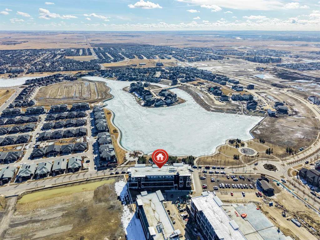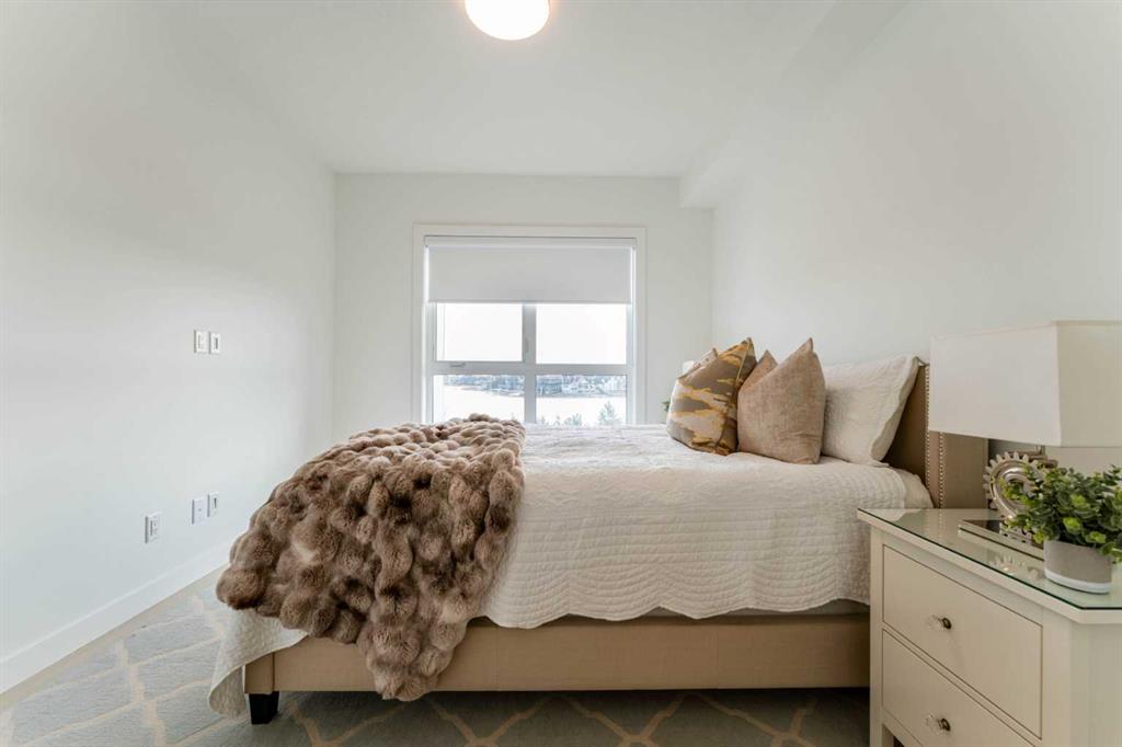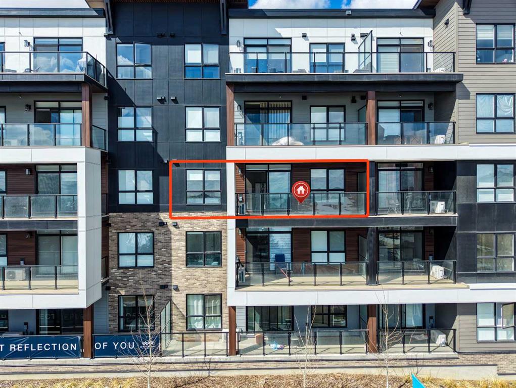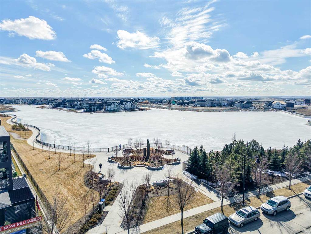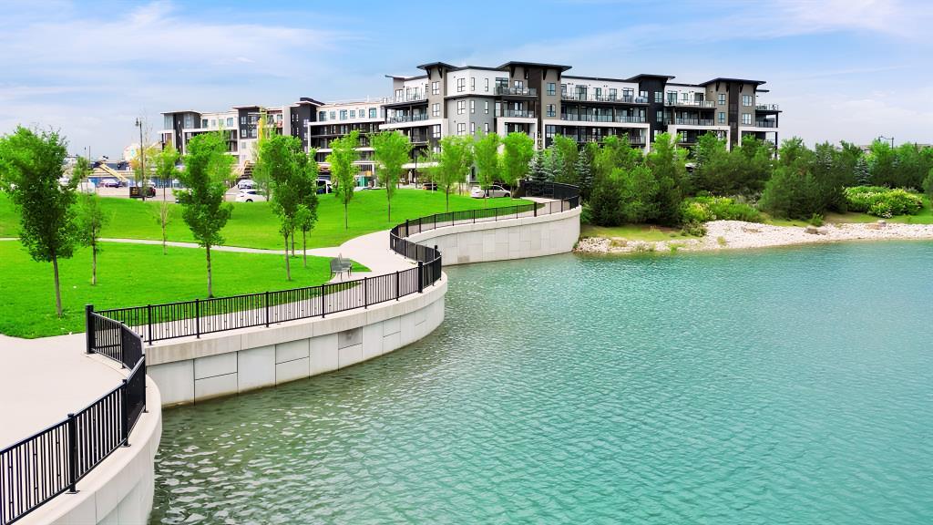 **OPEN HOUSE TODAY AND TOMORROW (APRIL 14-15, 2026, 5:30PM TO 8:00PM), ALL SHOWINGS ARE CONFIRMED FOR TODAY AND TOMORROW. CONTACT BRYN PASION AT 587-436-1235 FOR PROPERTY ACCESS.**WELCOME TO THIS LAKE FACING UNIT, BEAUTIFULLY UPGRADED AND THOUGHTFULLY DESIGNED 2-BEDROOM, 2-BATHROOM CONDO UNIT LOCATED IN THE HIGHLY SOUGHT-AFTER LAKE COMMUNITY OF MAHOGANY! Offering over 766 sq ft of living space with $40,000+ WORTH OF PREMIUM UPGRADES, this stunning unit combines MODERN FINISHES, functional layout, and exceptional comfort—perfect for first-time buyers, downsizers, or investors. Step inside to discover a bright and OPEN CONCEPT FLOOR PLAN featuring a spacious living room that seamlessly flows into the dining area and contemporary kitchen—ideal for both everyday living and entertaining. The kitchen is a true highlight, showcasing EXTENSIVE UPGRADES, including a sleek INDUCTION RANGE, UPGRADED STAINLESS STEEL APPLIANCES, extended cabinetry, and a beautifully designed island with added storage and overhang for casual seating. The thoughtful kitchen layout maximizes both style and functionality. The primary bedroom offers a comfortable retreat with VIEWS OF THE LAKE FROM ITS WINDOW, a walk-in closet and a private 4-ENSUITE WITH DOUBLE VANITY, featuring UPGRADED FINISHES and a FULLY-TILED SHOWER for a spa-like experience. The second bedroom, ALSO WITH VIEWS OF THE MAHOGANY LAKE FROM ITS WINDOW, is well-sized and conveniently located near the 3-piece main bathroom, also enhanced with modern fixtures and a fully tiled shower. Additional interior features include in-suite laundry, upgraded cabinetry details, modern hardware, and carefully selected finishes throughout that elevate the overall aesthetic of the home. Enjoy your morning coffee or unwind in the evening on the PRIVATE BALCONY OVERLOOKING THE LAKE, providing an ideal outdoor space to relax. This unit also benefits from approximately $44,000 in upgrades such as UPGRADED SAMSUNG KITCHEN APPLIANCES (induction range & refrigerator), extended kitchen island and cabinetry enhancements, custom pantry configuration, fully tiled showers in both bathrooms with frameless glass doors, upgraded plumbing fixtures and comfort-height toilets, under-cabinet lighting and modern matte black hardware and enhanced interior finishing details throughout. Located in the AWARD-WINNING COMMUNITY OF MAHOGANY, residents enjoy access to CALGARY’S LARGEST FRESHWATER LAKE, beaches, walking paths, parks, and an abundance of nearby amenities including shopping, restaurants, and schools. This is a rare opportunity to own a highly upgraded, move-in-ready condo in one of Calgary’s premier lake communities—don’t miss it!
