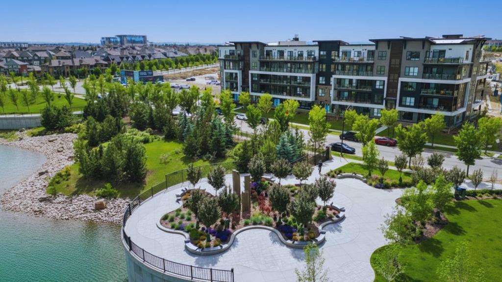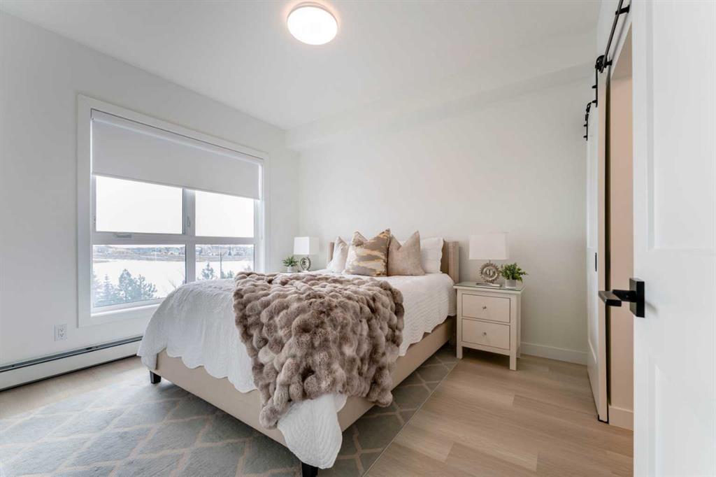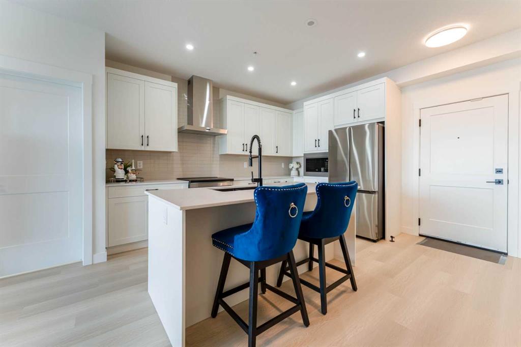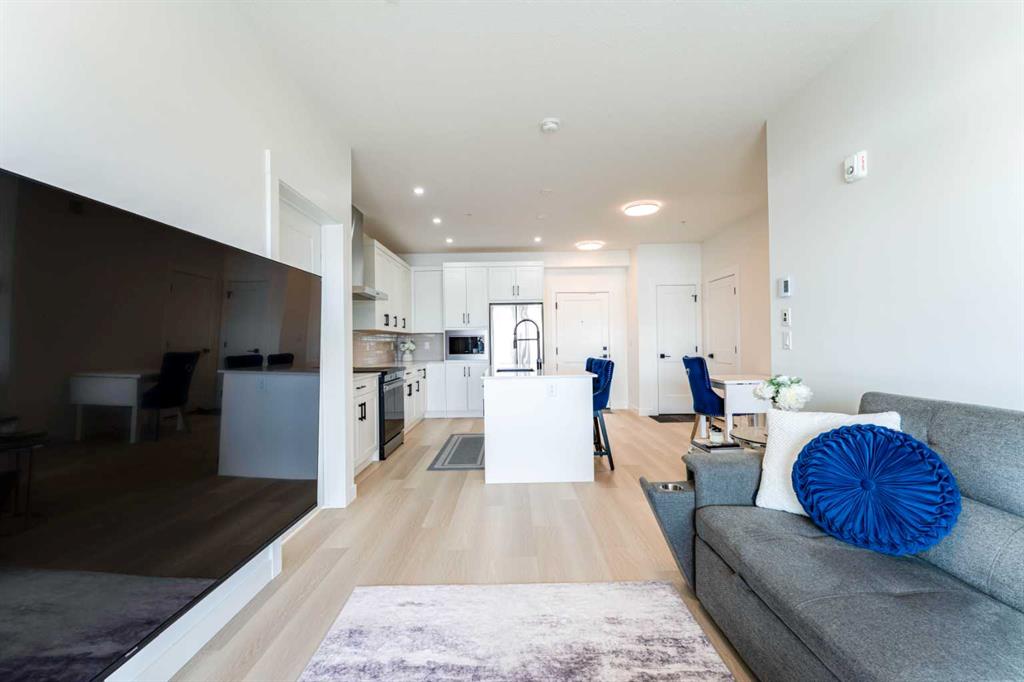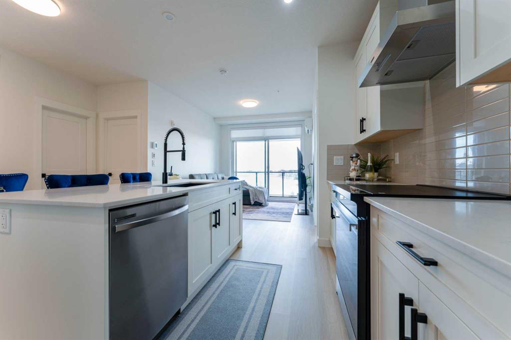 **OPEN HOUSE TODAY AND TOMORROW (APRIL 14-15, 2026, 5:30PM TO 8:00PM), ALL SHOWINGS ARE CONFIRMED FOR TODAY AND TOMORROW. CONTACT BRYN PASION AT 587-436-1235 FOR PROPERTY ACCESS.**WELCOME TO THIS LAKE FACING UNIT, BEAUTIFULLY UPGRADED AND THOUGHTFULLY DESIGNED 2-BEDROOM, 2-BATHROOM CONDO UNIT LOCATED IN THE HIGHLY SOUGHT-AFTER LAKE COMMUNITY OF MAHOGANY! Offering over 766 sq ft of living space with $40,000+ WORTH OF PREMIUM UPGRADES, this stunning unit combines MODERN FINISHES, functional layout, and exceptional comfort—perfect for first-time buyers, downsizers, or investors. Step inside to discover a bright and OPEN CONCEPT FLOOR PLAN featuring a spacious living room that seamlessly flows into the dining area and contemporary kitchen—ideal for both everyday living and entertaining. The kitchen is a true highlight, showcasing EXTENSIVE UPGRADES, including a sleek INDUCTION RANGE, UPGRADED STAINLESS STEEL APPLIANCES, extended cabinetry, and a beautifully designed island with added storage and overhang for casual seating. The thoughtful kitchen layout maximizes both style and functionality. The primary bedroom offers a comfortable retreat with VIEWS OF THE LAKE FROM ITS WINDOW, a walk-in closet and a private 4-ENSUITE WITH DOUBLE VANITY, featuring UPGRADED FINISHES and a FULLY-TILED SHOWER for a spa-like experience. The second bedroom, ALSO WITH VIEWS OF THE MAHOGANY LAKE FROM ITS WINDOW, is well-sized and conveniently located near the 3-piece main bathroom, also enhanced with modern fixtures and a fully tiled shower. Additional interior features include in-suite laundry, upgraded cabinetry details, modern hardware, and carefully selected finishes throughout that elevate the overall aesthetic of the home. Enjoy your morning coffee or unwind in the evening on the PRIVATE BALCONY OVERLOOKING THE LAKE, providing an ideal outdoor space to relax. This unit also benefits from approximately $44,000 in upgrades such as UPGRADED SAMSUNG KITCHEN APPLIANCES (induction range & refrigerator), extended kitchen island and cabinetry enhancements, custom pantry configuration, fully tiled showers in both bathrooms with frameless glass doors, upgraded plumbing fixtures and comfort-height toilets, under-cabinet lighting and modern matte black hardware and enhanced interior finishing details throughout. Located in the AWARD-WINNING COMMUNITY OF MAHOGANY, residents enjoy access to CALGARY’S LARGEST FRESHWATER LAKE, beaches, walking paths, parks, and an abundance of nearby amenities including shopping, restaurants, and schools. This is a rare opportunity to own a highly upgraded, move-in-ready condo in one of Calgary’s premier lake communities—don’t miss it!