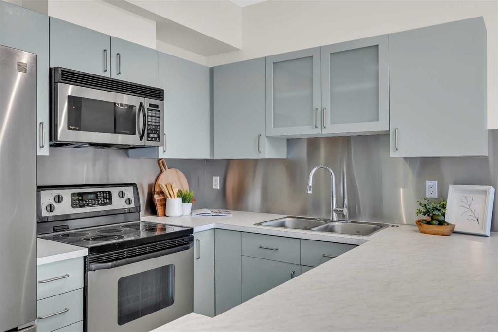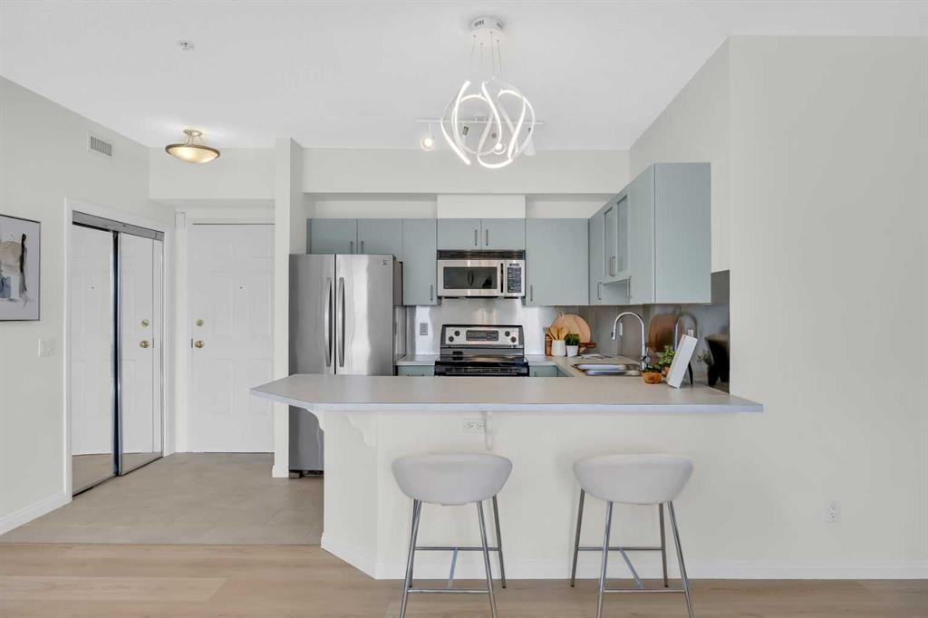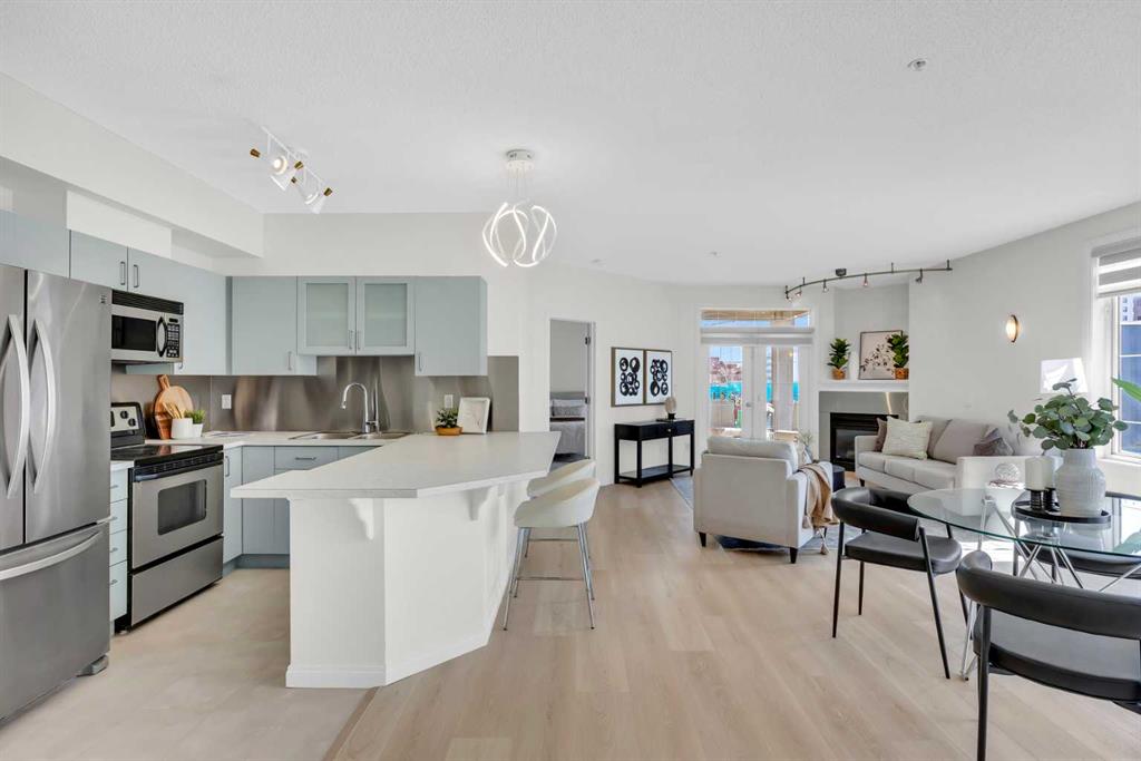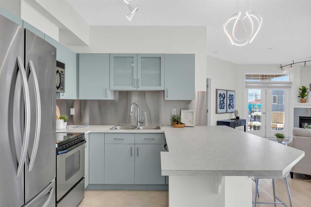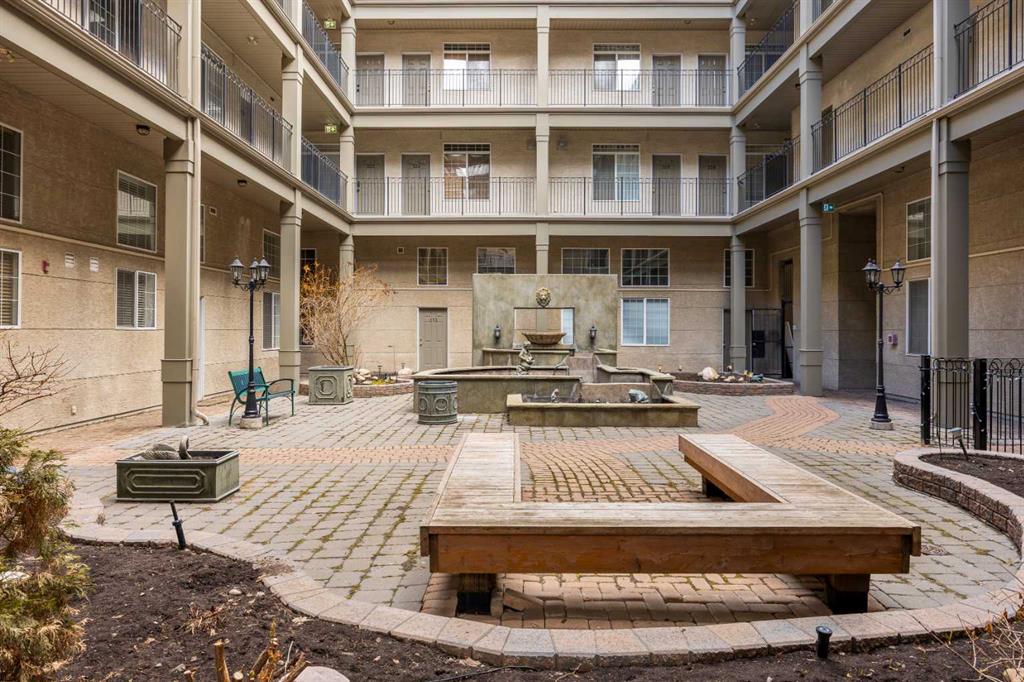 WELCOME to THE CONSERVATORY!! LOCATION ! LOCATION ! CORNER UNIT! Sunny south facing, 2 bedroom, open concept condo. NEWLY RENOVATED. Gourmet kitchen and eating island. Large Master bedroom with 4 Piece ensuite, walk-in Closet. Open Living and Dining Room with corner Gas Fireplace. 2nd Bedroom, Additional 4 piece main bath, In suite Laundry! Large Balcony with 2 French doors( one off the master bedroom) 9' ceilings. One indoor secured parking and storage. Center Courtyard that is open to all units. Walking distance to all amenities....shopping, public transportation, 17th avenue, 4th street........and much more