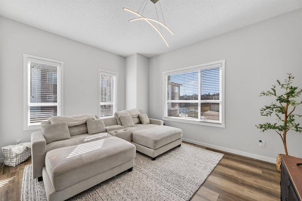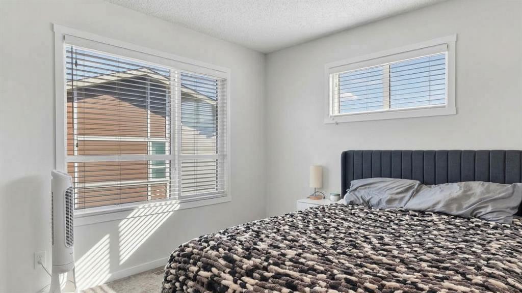 Welcome to this beautifully maintained corner unit townhouse in the sought after community of Harvest Hills the perfect blend of comfort convenience and lifestyle. This bright and airy 2 bedroom 2.5 bath home features a modern open concept layout designed for both everyday living and entertaining. The main floor flows seamlessly from the spacious living area into the dining space and kitchen creating a warm and inviting atmosphere. Large windows throughout the home flood the space with natural sunlight enhanced by the desirable south facing exposure along the side of the property. Upstairs you will find two generously sized bedrooms each offering privacy and functionality ideal for young professionals couples or small families. The 2.5 bathrooms ensure convenience for both residents and guests. Enjoy the practicality of a single attached garage offering secure parking and additional storage along with the benefits of a corner unit with extra privacy more windows and an overall brighter living experience. Location is where this home truly shines. Situated just minutes from Deerfoot Trail and Stoney Trail commuting anywhere in the city is quick and efficient. Plus you are only about 10 minutes from Calgary International Airport making travel incredibly convenient. Harvest Hills offers fantastic nearby amenities including grocery stores restaurants cafes schools parks and scenic walking paths. Enjoy easy access to Harvest Hills Lake Vivo Recreation Centre and shopping hubs like Country Hills Town Centre all just a short drive away. Whether you are a first time buyer investor or looking to downsize without compromise this home offers incredible value in a well connected family friendly neighborhood.