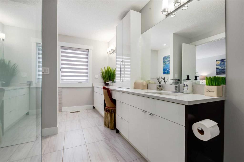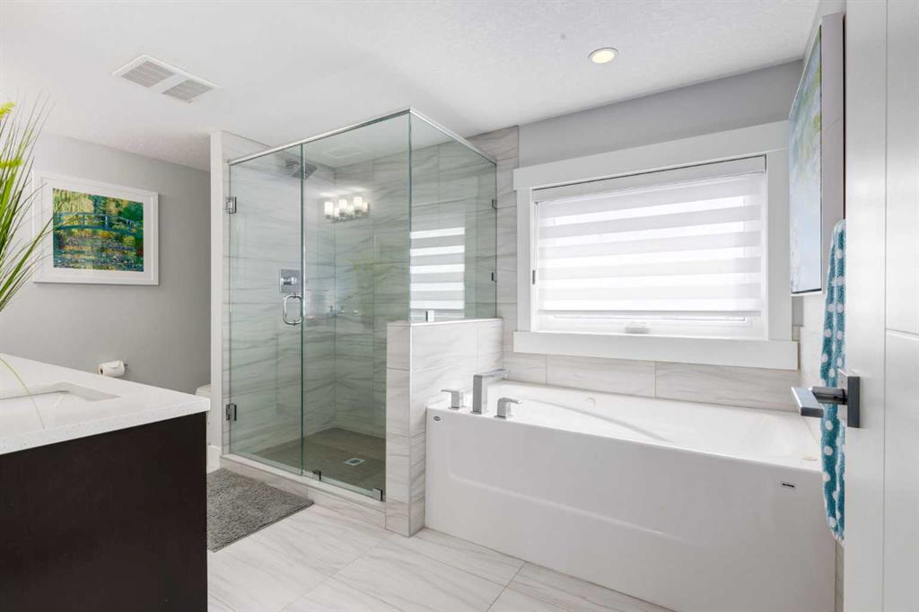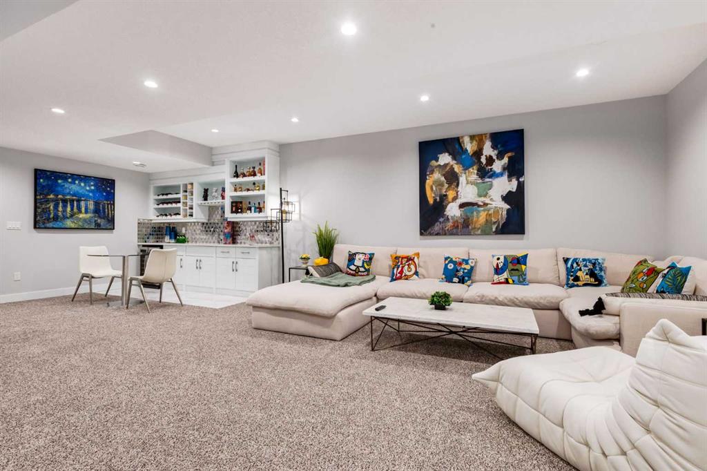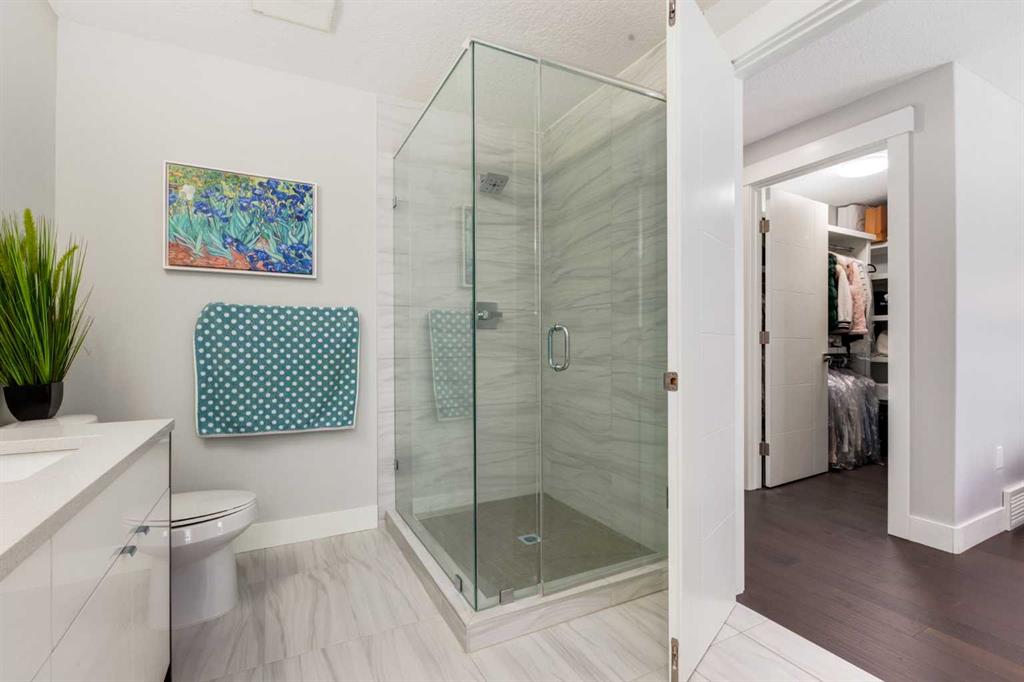Fully finished basement offers a large wet bar and full 4-pc bathroom, suitable for guests or family use with walk in closet, with in-floor heating, which roughed in.