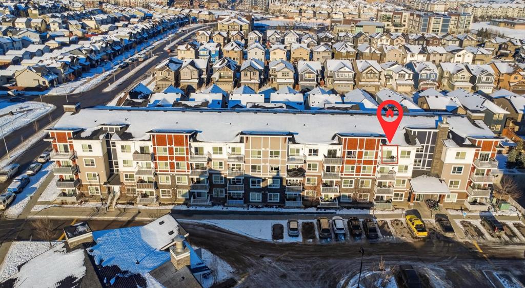 Welcome to this incredibly bright and spacious 818-sq-ft unit in a family-friendly community! This thoughtfully curated 2 – bedroom, 2–bathroom top–floor unit in Skyview Ranch blends style and substance effortlessly, with every room crafted for comfort, natural light, and connection. Morning sunshine streams through the patio doors, bathing the open-concept living area in a gentle glow. From the living room, sliding glass doors usher you onto a generous balcony overlooking the mountains, where you can savor outdoor meals all summer long. The spacious kitchen, framed with full-height cabinetry and refined finishes, feels both grounded and welcoming, including quartz countertops, stainless steel appliances, in-suite laundry, cork flooring, and carpet. A modern light fixture anchors the dining area, perfectly centering your dining table. A built-in desk area is nestled between the dining and living rooms, offering a convenient place for remote work or school assignments. Both bedrooms are ample and finished with luxurious carpeting. The primary bedroom boasts a walk-through closet that opens into a private 4-piece ensuite with a tub/shower combo. The second large bedroom on the far side of the unit is served by an adjacent 4-piece bath. The in-suite laundry is a welcome convenience and provides sufficient storage. This condo also includes the convenience of a titled underground parking stall, along with an additional storage locker located in front of the stall, perfect for seasonal items. As a resident of Skyview Ranch, you’ll enjoy an unbeatable lifestyle with access to schools, shopping, restaurants, parks, and excellent transportation routes, making commuting easy. With quick access to Stoney Trail, Deerfoot Trail, CrossIron Mills, Amazon shipping depot, and The Airport. You’ll be well-connected to go anywhere you want to explore. Schedule your showing today!