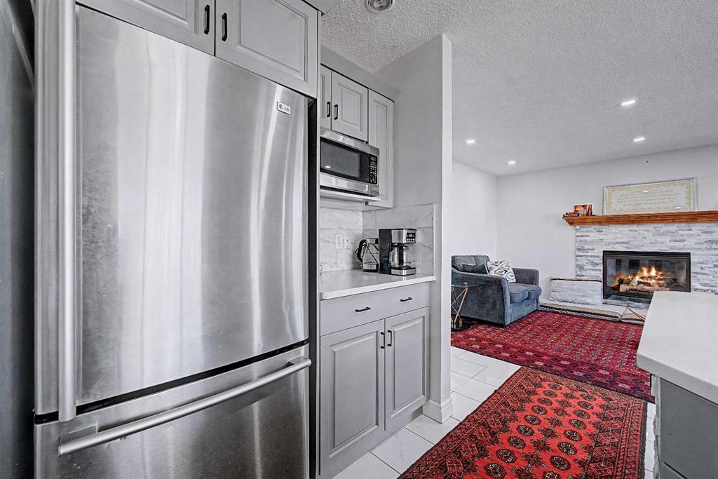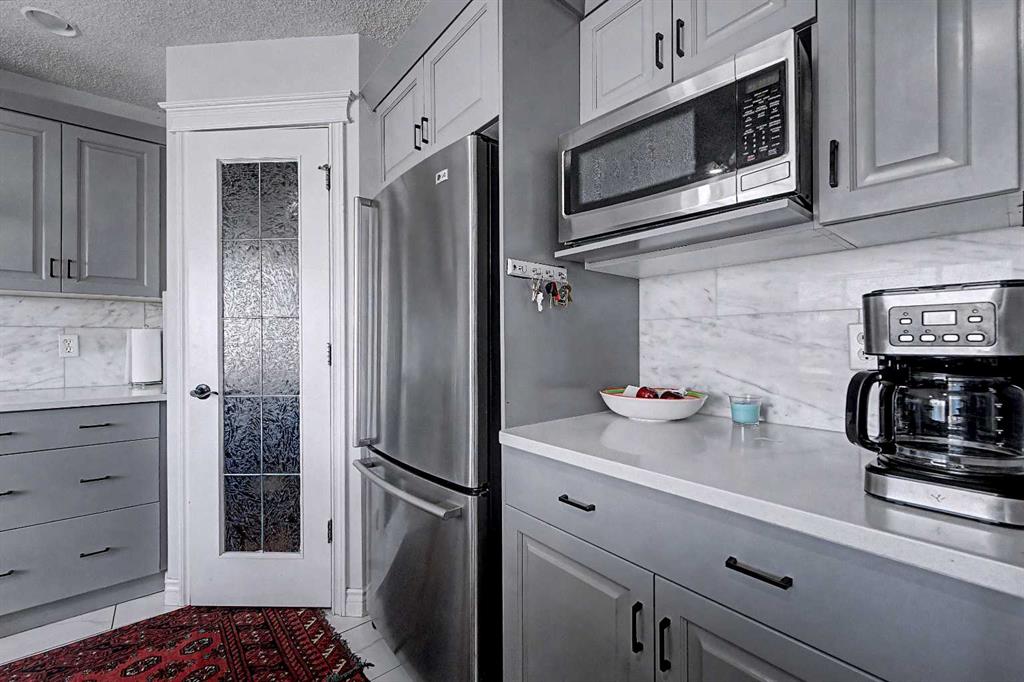 Step outside to a beautiful deck, perfect for summer BBQs, with stairs leading down to a low-maintenance backyard that opens onto scenic walking paths along Nose Creek.