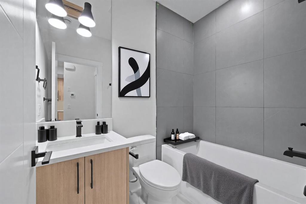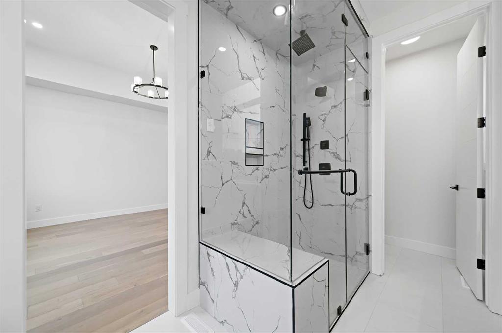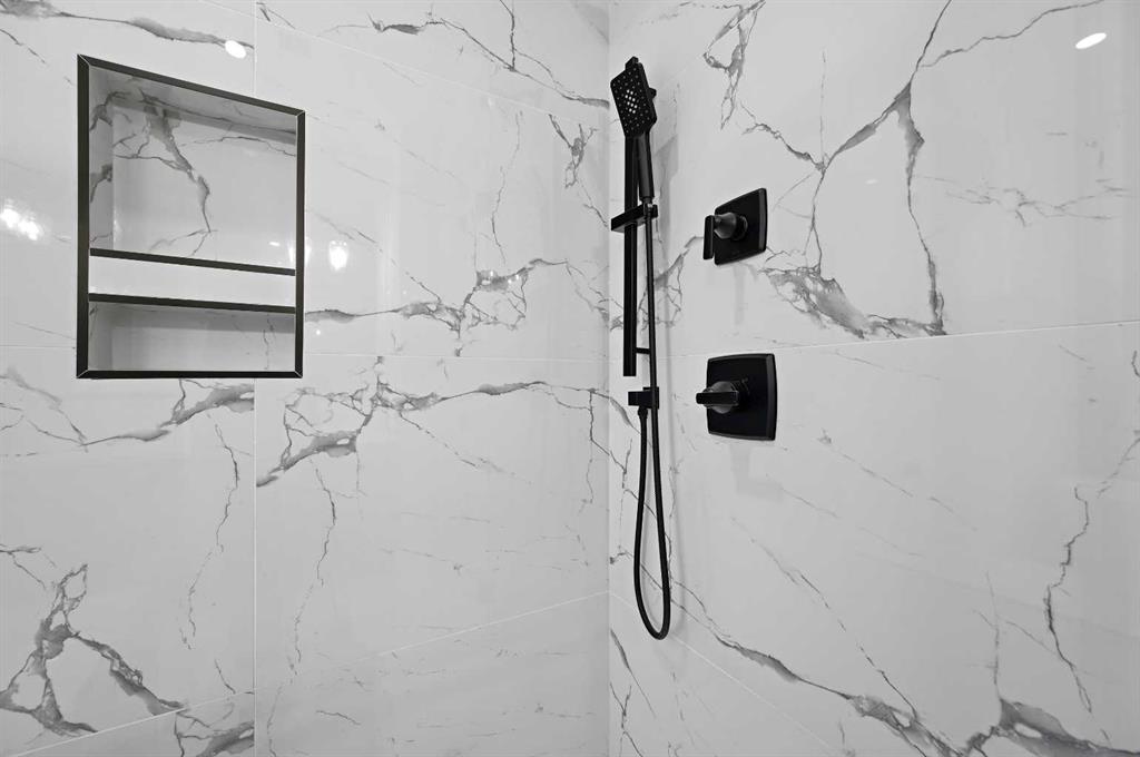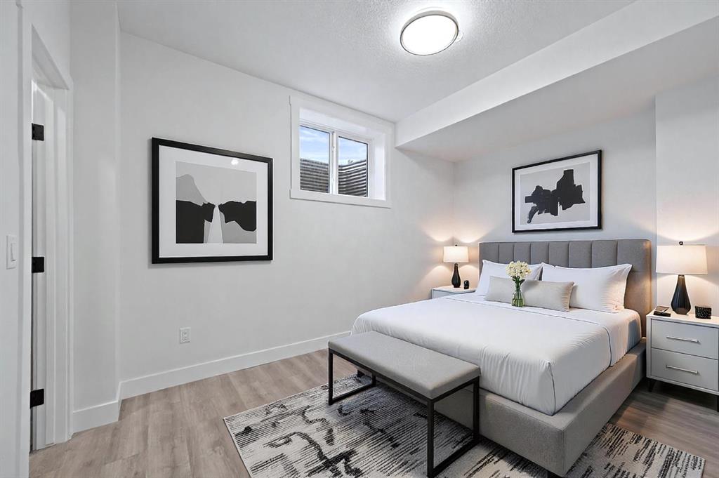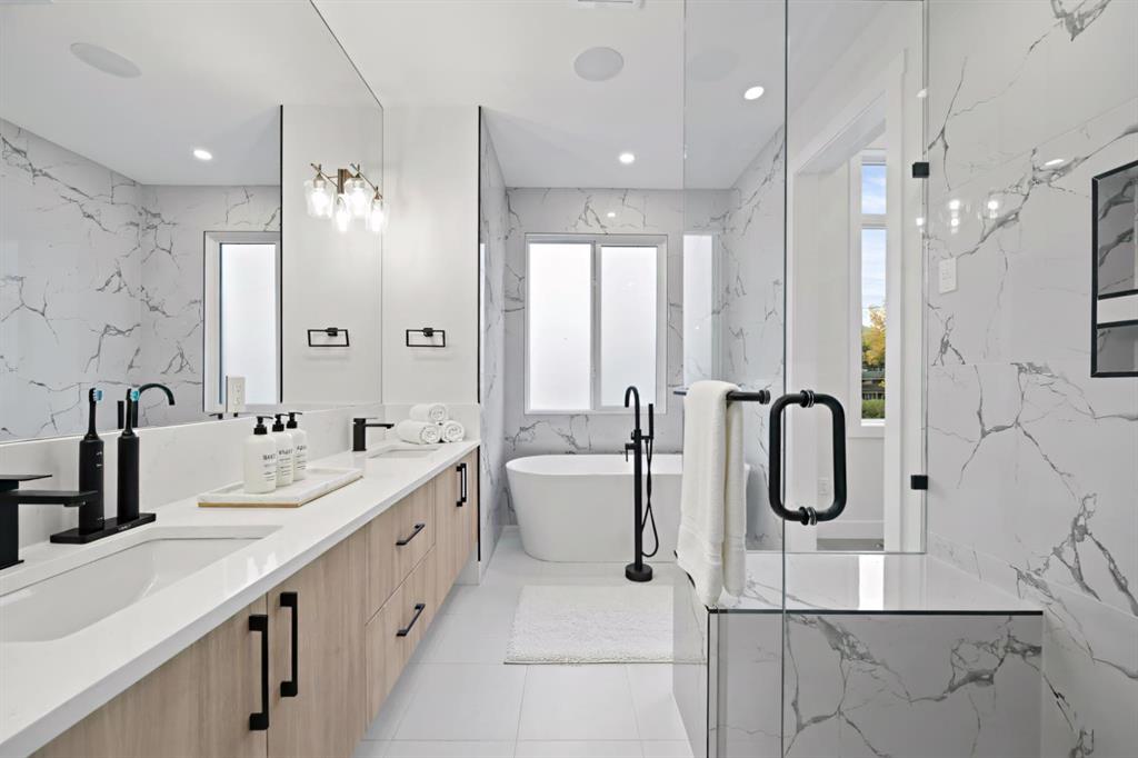 Calling all Investors! Looking for a brand new SXS Duplex with legal basement suites? This 8112 unit can be sold together with attached 8114 to provide an excellent cash flowing opportunity with the convenience of having all construction materials and components still under New Home Warranty. Both 8112 and 8114 are rented on long term leases with tenants who would prefer to stay. This unit rents monthly at $2900 for the upper suite + 70% util. and $1250 + 30% util. for the lower suite. Amazing home boasting elevated design and incredible functionality, featuring a legal 2-bedroom basement suite and a sunny south exposed front with expansive valley views from the upper floor. Every detail was thoughtfully selected, from the wide-plank modern floors to the curated lighting and premium finishes throughout. Step inside to a bright, open-concept main floor with 10' ceilings, oversized windows and neutral tones that create an airy, inviting vibe. The large, well-lit dining room is perfect for bigger families and/or hosting guests and shows off a vibrant and colourful feature wall, which flows seamlessly into a designer kitchen featuring modern warm toned cabinetry, paired with beautifully coloured glass backsplash, quartz countertops, matte black hardware, a huge walk-in pantry with built-in shelving, and a perfect-sized center island with bar seating with more natural wood tones, bringing everything together beautifully. The upgraded stainless steel appliance package includes an oversized sub zero fridge with french doors, a gas cooktop with stylish hood fan, and a thoughtfully placed wall oven and microwave. The rear living room is wide and spacious featuring additional large windows plus a cozy gas fireplace with stone surround and custom mantle, and which leads you out to the large backyard, which features an oversized concrete pad, perfect for end of the day BBQ's and lounging. An enclosed mudroom with a large closet area and a sleek powder room that comes with a raised matte black sink complete the mainfloor. Upstairs contains the three large bedrooms, all with trayed ceilings, including the primary bedroom which is a true retreat that features a large walk-in closet with several custom built-ins plus a hotel like ensuite. Enjoy heated tile flooring, dual sinks, quartz countertops, matching tile surrounds, plus a free standing soaker tub and an oversized glass shower with rain shower head and roughed-in for steam. The upper laundry room comes with a sink, quartz countertops, additional wood toned cabinetry, and is situated beside the stylish full bathroom which features a tiled tub/shower combo. Downstairs features the thoughtfully designed legal 2 bedroom suite and features 9' ceilings, luxury vinyl plank flooring, wonderfully warm toned cabinetry, stainless steel appliances and lots of pot lighting. A full bathroom with elegant tile is also featured plus a dedicated laundry room, separate side entrance and storage, making this perfect for rental income.