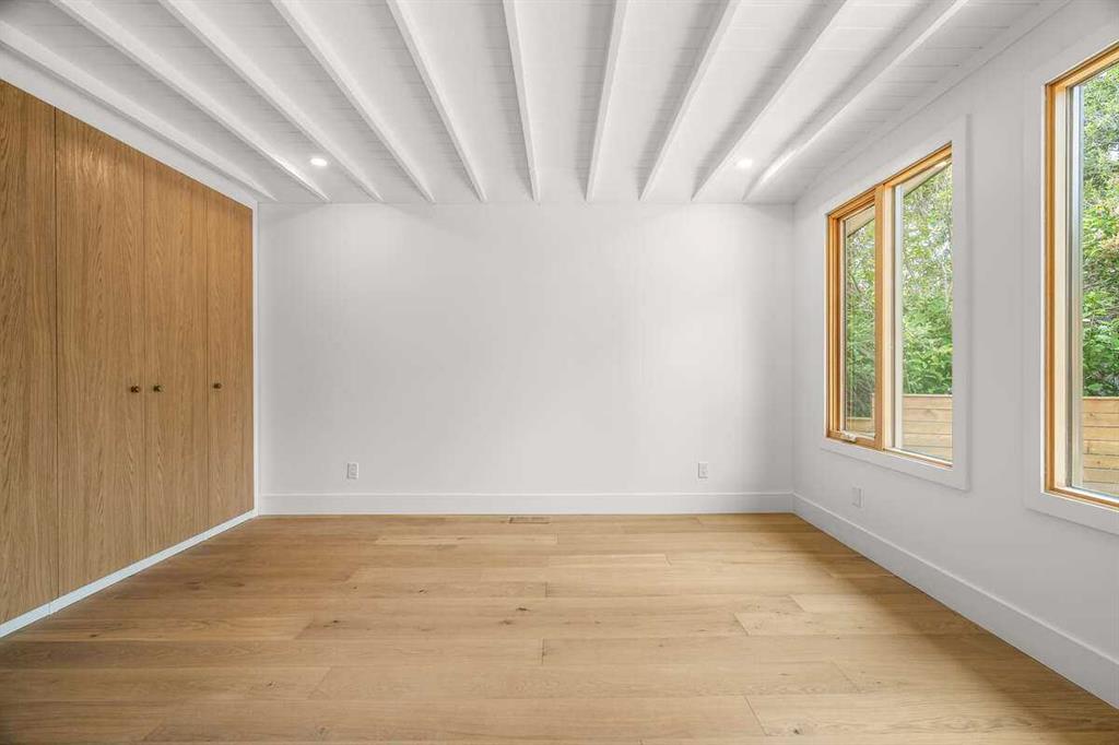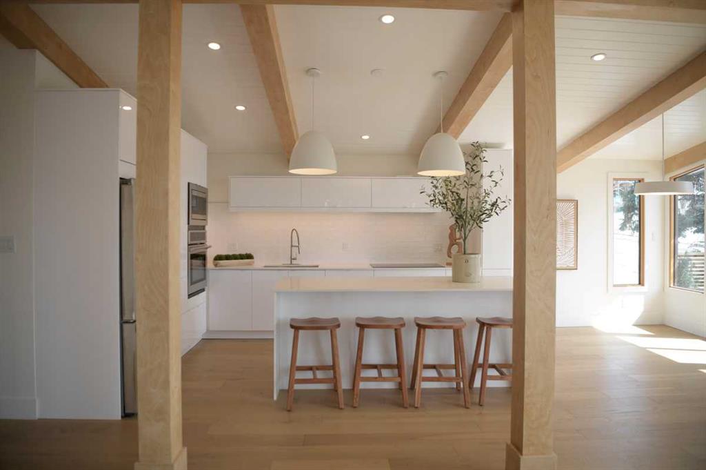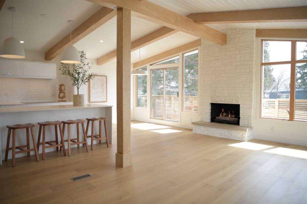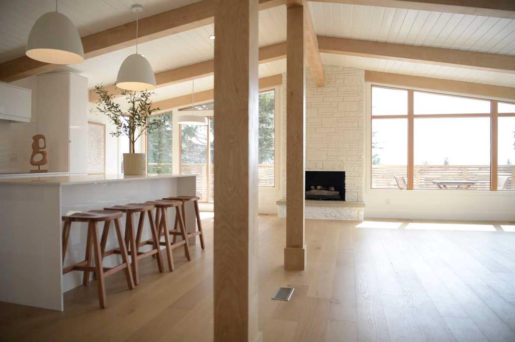 Welcome to one of Charleswood’s most unique homes. This 1963 Midcentury beauty shines with touches of Scandi and Alpine style. Thoughtfully renovated over the past year, it offers over 2300 sq ft of living space. As you enter the house you will enjoy the new handcrafted railings, custom tiling, the new insulated and installed tongue and groove vaulted ceilings, brand new Lux wood windows, plank engineered hardwood and a bespoke wide balcony offering a panoramic view. The newly installed kitchen is minimalist and it offers ample storage. On this floor you will also find 2 bedrooms and 2 full bathrooms, all featuring exposed joist, tongue and groove ceilings. Downstairs the walkout basement has two bedrooms, a 4-pc bathroom, laundry, storage, and a generous family room with sliding doors to the front garden. Outside the house has been professionally landscaped and new exposed aggregate driveway and steps, new fence, deck. You are just minutes from Market Mall, U of C, Foothills Hospital, Northland Mall, Brentwood Mall and Nose Hill Park via the pedestrian bridge. Confederation Park is just 10 min away and Downtown is 15 min. Designed, renovated and loved by the current owner. Do not miss out, one of a kind!