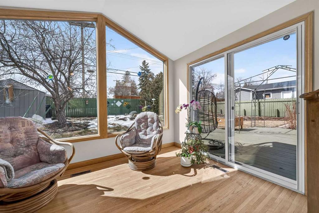 Welcome to this lovingly maintained 3-level split in the heart of Kingsland, offering a rare combination of character, space, and an exceptional location. Situated on a generous 60’ x 100’ lot, this home faces a peaceful green space—formerly the Kingsland Elementary School site—providing an open, unobstructed outlook that’s here to stay. Step inside to discover 1,293.6 sq ft of thoughtfully designed living space above grade, where warmth and functionality meet. The main floor features original oak hardwood flooring and a bright, inviting L-shaped living and dining area, anchored by a cozy gas fireplace—perfect for relaxing or entertaining. The centrally located kitchen offers a vaulted ceiling with skylight, white cabinetry, and a large window overlooking the backyard, filling the space with natural light. At the rear of the home, a standout feature awaits: a sunken sunroom with vaulted ceilings and expansive west-facing windows, creating a sun-drenched retreat you can enjoy year-round, thanks to the fully heated crawlspace below. Upstairs, you’ll find three bedrooms, including a primary suite with its own 3-piece ensuite, along with a full 4-piece bathroom. The hardwood flooring continues throughout this level, adding continuity and charm. The lower level offers excellent additional living space, including a family room with large front-facing windows, a fourth bedroom, and a dedicated laundry and workshop area—ideal for growing families or those needing flexible space. A large crawl space (580 sqft) provides ample storage opportunities. Outside, the home continues to impress. The west-facing backyard is a true gardener’s paradise—meticulously curated over the years with blooming perennials and raspberry bushes. Enjoy summer evenings on the deck (gazebo included!), with the convenience of a rear lane and a storage shed tucked into the corner. The fully fenced yard offers privacy and functionality. The front yard is designed for low-maintenance living, and the extended driveway easily accommodates 3–4 vehicles. This is a rare opportunity to own a solid, well-cared-for home on a premium lot in an established community—close to schools, transit, shopping, and major routes—while enjoying the tranquillity of a green space right outside your door. A property with this combination of lot size, location, and pride of ownership is seldom available—don’t miss your chance to make it yours.