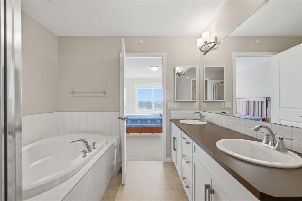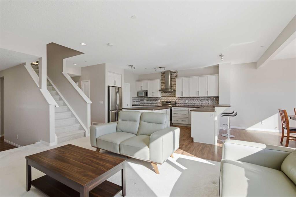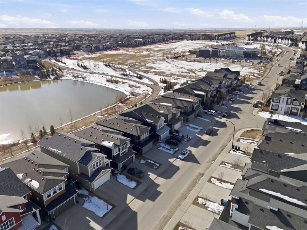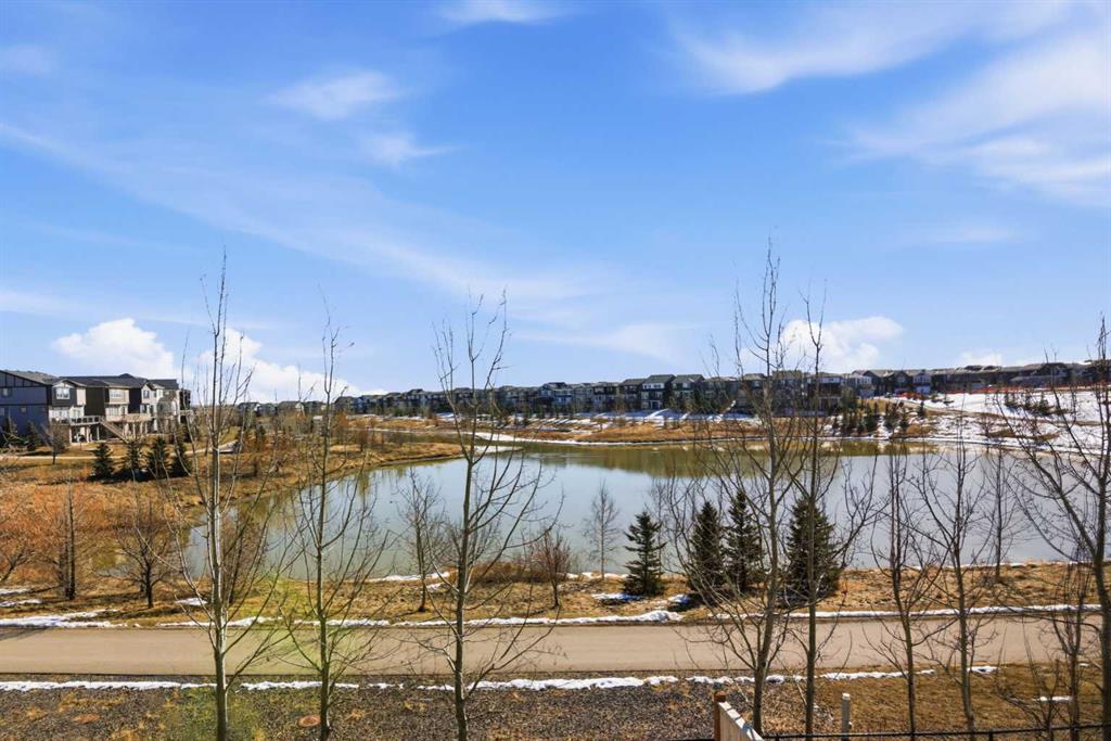 Located within the popular community of Livingston, this fabulous fully developed two story walkout home that borders and backs onto a gorgeous pond. The modern open concept main floor offers a U-Shaped kitchen with a large center island, a spacious living room and a bright dining area overlooking the pond. The kitchen has been equipped with stainless steel appliances, laminate countertops, and timeless white colour cabinetries. The large windows in the living room and dining area bring plenty of sunlight with a full view of the beautiful pond and green space. The patio door opens onto a deck that can comfortably seat a crowd. Upstairs features a spacious bonus room, two additional bedrooms, a full bathroom, and a master suite with open unobstructed views. The walk out basement has been beautifully developed by the builder with a 4-piece bathroom, a large 4th bedroom, and a bright recreation room with direct access to the concrete patio and the backyard. The east facing backyard is professionally landscaped and is just steps away from a walking/biking path. Brand new exteriors including Roof, Full Wrap of Sidings, Garage Door, and Drainage & Gutters were completed in 2025. The house is centrally located within walking distance to the Livingston Hub, future schools, public transit and a few community commercial centers. It is also close to parks and playgrounds and with easy access to the International Airport, Stoney Trail, Deerfoot Trail, Airdrie and Crossiron Mills. This home is the first time listed on the market, a rare find, don't miss this opportunity to make it yours. Call and book your showings today!