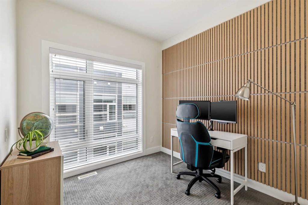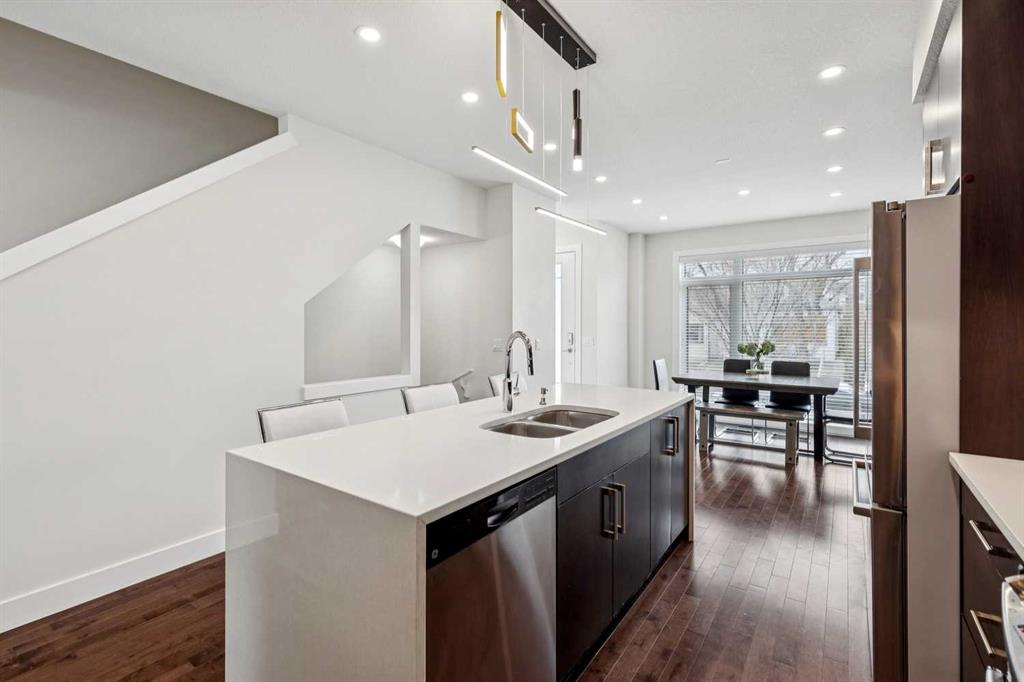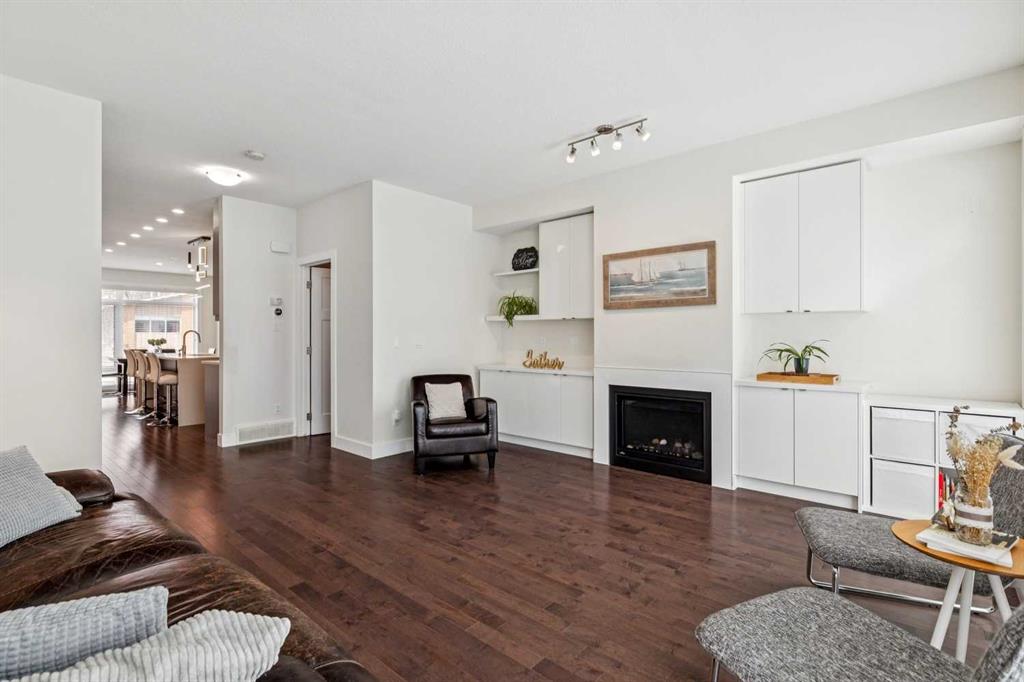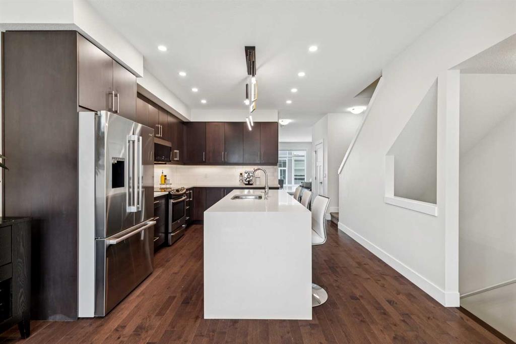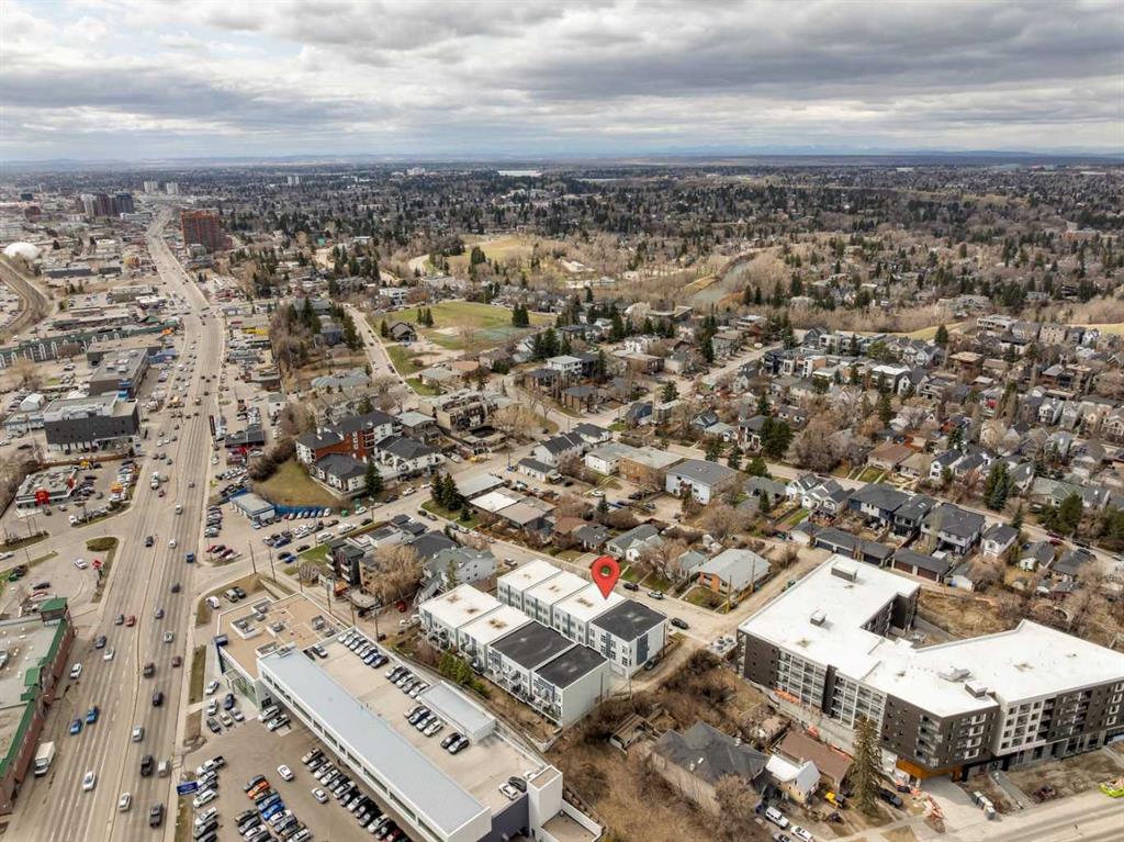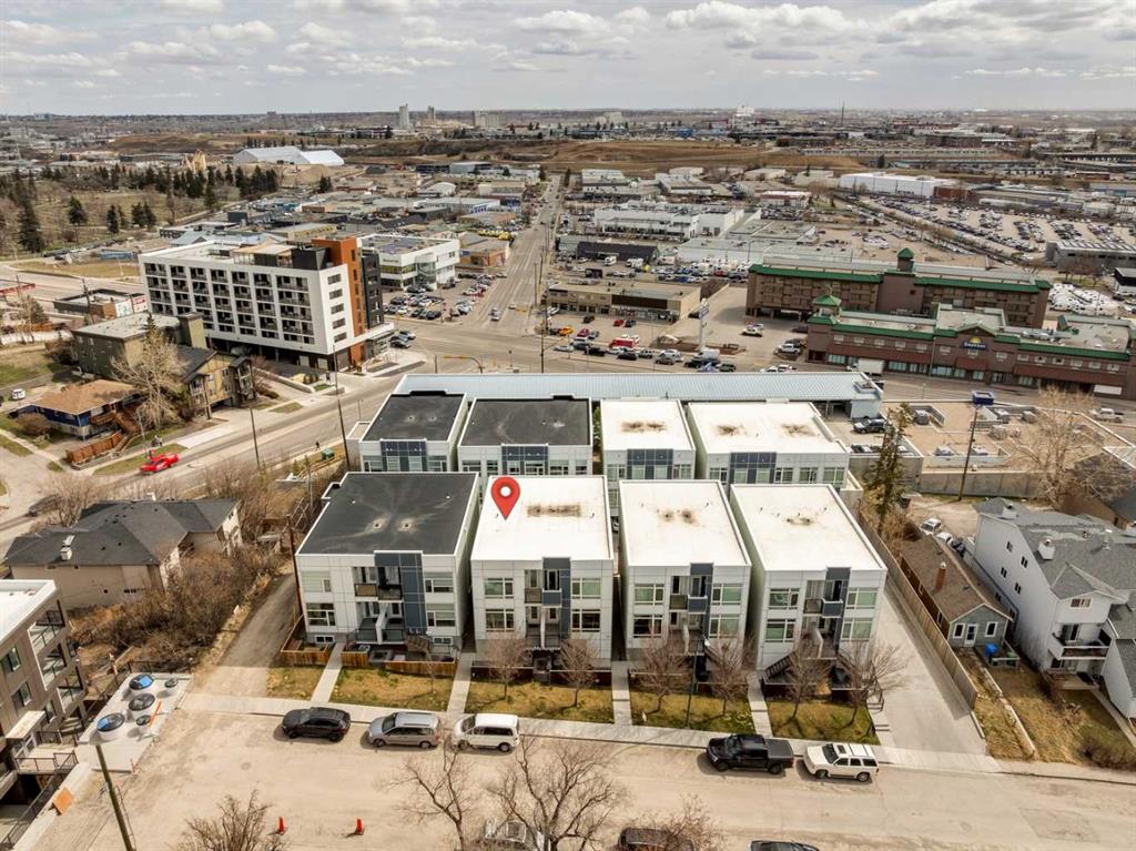 Welcome to this modern 3-bedroom townhome in the coveted inner-city community of Parkhill, the urban professional's address. Striking curb appeal sets the tone, with 9-ft ceilings and large windows flooding the open-concept main floor with natural light. The contemporary kitchen features quartz countertops, tile backsplash, stainless steel appliance package, built-in pantry, upgraded lighting, and plenty of cabinet space, flowing into a bright dining area and modern living room anchored by a gas fireplace with custom built-ins. Upstairs, the spacious primary bedroom retreat offers a large walk-through closet, private balcony, and double vanity ensuite. Two additional bedrooms are thoughtfully separated by soundproofed walls, ideal as a dedicated home office, nursery, or guest room. Central air conditioning, high-efficiency furnace, and hardwood flooring deliver year-round comfort and quality throughout. Parking includes an oversized single garage with extra storage, plus a covered carport for a second vehicle, available guest parking, and street parking at the front. Exceptionally low condo fees with landscape maintenance included make this an affordable inner-city opportunity. Walk to Stanley Park, river pathways, and the 39 Ave LRT station. Minutes to trendy Mission's shops and restaurants, Chinook Mall, the Stampede Grounds, Saddledome, and the downtown core. Work, live, and play from a central location built for the way you want to live.
