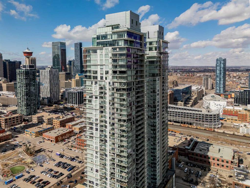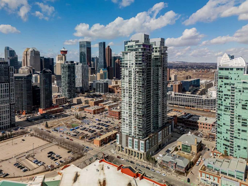 Perched on the 29th floor of the iconic Guardian South Tower, this stunning 1 bedroom, 1 bathroom condo offers breathtaking downtown skyline views and an elevated urban lifestyle. Floor-to-ceiling windows flood the space with natural light while showcasing sweeping city vistas both day and night. The thoughtfully designed open-concept layout maximizes every square foot, featuring a modern kitchen complete with sleek cabinetry, quartz countertops, and a contemporary appliance package. The bright living area flows seamlessly to your private balcony—perfect for enjoying morning coffee or evening sunsets overlooking the heart of the city. The spacious bedroom offers comfort and functionality, while the well-appointed bathroom features clean, modern finishes. In-suite laundry adds everyday convenience, making this home ideal for professionals, first-time buyers, or investors. Residents of the Guardian enjoy premium amenities including a fully equipped fitness centre, stylish social lounge, and concierge/security services. Located in the vibrant Beltline, you’re just steps from restaurants, cafés, nightlife, and easy access to transit—putting the best of downtown living right at your doorstep. Experience elevated city living from one of Calgary’s most sought-after high-rise communities.