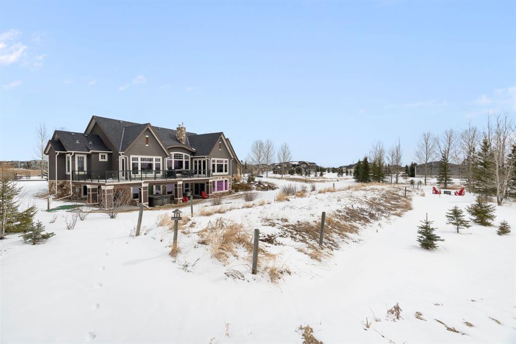 Set within the Willow Creek enclave of Bearspaw, just a 7-minute drive to Calgary city limits, this 4,700 sq. ft. BUNGALOW welcomes you with a gated stone entry surrounded by mature, professionally landscaped grounds. Built in 2010 by Astoria Homes this previous showhome’s exterior architecture blends stone and brick with sculpted rooflines, while the interior features 12-foot ceilings, detailed millwork, and principal rooms oriented toward stunning MOUNTAIN VIEWS. The foyer showcases stone inlay set into hickory hardwood flooring, immediately reflecting the CRAFTSMANSHIP found throughout the home. A private office with bespoke built-ins and a leather-paneled coffered ceiling creates a refined, executive atmosphere. A fully integrated smart home Control4 system ensures seamless functionality. The main living area is anchored by a striking double-sided stone fireplace and soaring windows. Designed for entertaining, the kitchen centres around an oversized GRANITE island and features a full professional appliance package: Sub-Zero, Wolf, Miele brands including a built-in espresso machine. The kitchen boasts a dedicated wine service area offering seamless hosting to the bright dining space that opens onto a southwest-facing terrace, extending the living area outdoors. The laundry room is a retreat, including a statement island. The spacious primary suite offers private outdoor access and a luxurious ensuite with heated surfaces, a sculptural tub, and a multi-jet shower accented with marble tile detailing. A custom dressing room with pull-down rods adds both convenience and elegance, while marble tile and in-mirror televisions elevate the space. The walk-out lower level is designed for leisure and entertainment, featuring a theatre with a 4K PROJECTOR and full sound system, a billiards area, a fireplace lounge, a custom wet bar complete with microwave, dishwasher, and dedicated wine and beer refrigeration, a fitness room, and two additional bedrooms with a full bathroom. Thoughtfully positioned behind the bar is a WINE ROOM, ideal for the avid collector. Unique features such as inlaid countertop televisions and a steam bath further enhance the home’s luxury. Stepping out onto the back patio, you are welcomed by several spaces for relaxing either in the HOT TUB, down the hill to a fire pit area or up on the upper decks that overlook the landscaped yard. For maximum enjoyment of the beautiful native plants and trees the property has lawn and flower bed irrigation. The oversized 3-car garage with lots of overhead storage capacity also has a “man cave” with custom built-in cabinetry and TV and a private urinal. Recent upgrades include a newly redone driveway, fresh exterior paint, a Culligan WATER SYSTEM, full attic insulation, updated basement carpeting, and both electric and hydronic in-floor heating. This residence represents a rare combination of thoughtful design, high-end finishes, and advanced infrastructure in one of Bearspaw’s most established acreage communities.