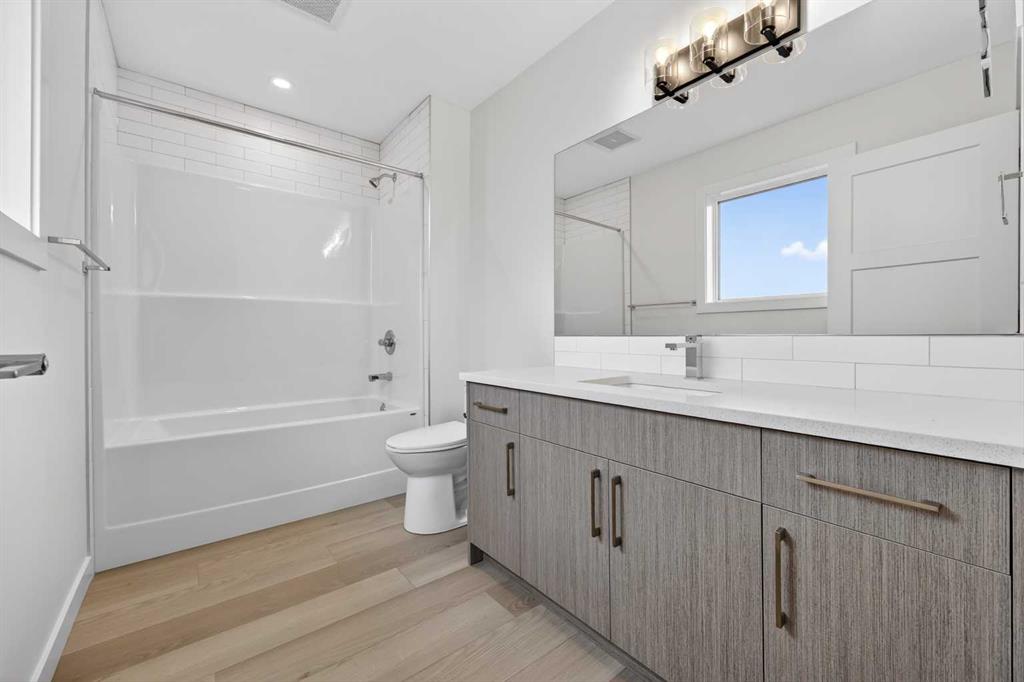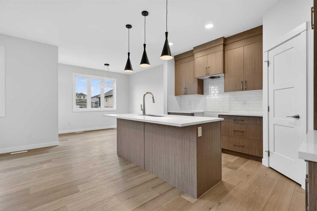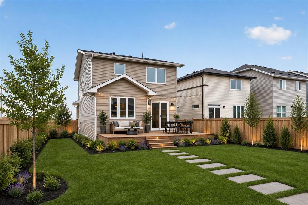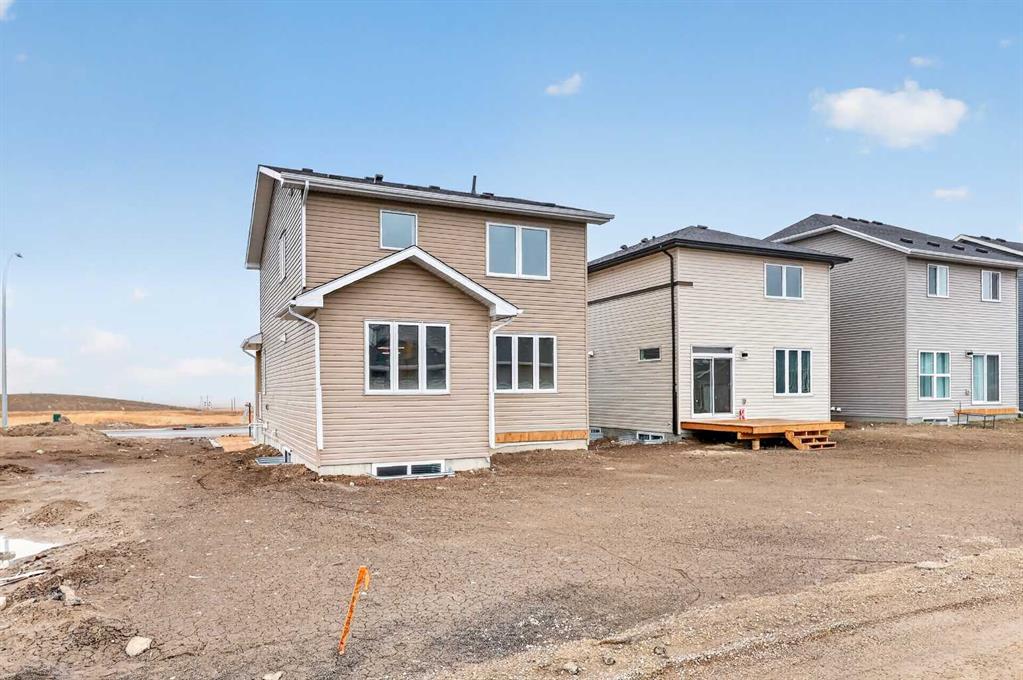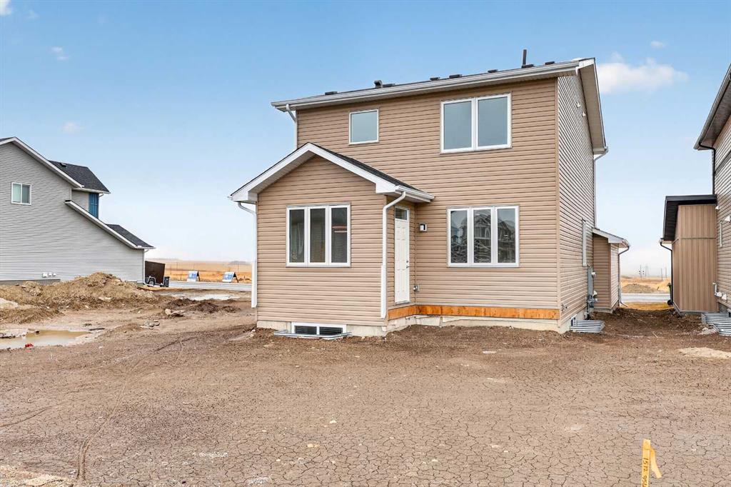 Start your next chapter in Iron Landing with a newly built home that seamlessly combines modern design and everyday functionality. An open-to-above front entry immediately creates a bright, airy first impression, setting a warm and welcoming tone from the moment you step inside. The main living area with 9ft ceilings unfolds with luxury vinyl plank flooring and a neutral colour palette, offering a clean, cohesive backdrop that complements a variety of design styles. South-facing windows fill the space with natural light, enhancing the inviting atmosphere—perfect for both relaxed evenings and lively gatherings. The kitchen is thoughtfully designed for both style and efficiency, featuring quartz countertops, full-height cabinetry, a pantry, and timeless subway tile. A central island with breakfast seating becomes a natural hub for connection and conversation. Buyers will also appreciate the $4,500 appliance allowance through Trail Appliances, providing the flexibility to select finishes that suit their personal taste. The dining area is ideally positioned with easy access to the south facing backyard, encouraging effortless indoor-outdoor living. A main floor den, enclosed with French doors, offers a private space for work, study, or quiet retreat. A conveniently located powder room adds to the home’s functional layout. Upstairs, consistent finishes continue the home’s polished and modern feel. The primary suite serves as a comfortable retreat, complete with a walk-in closet and a private 4-piece ensuite designed for both ease and practicality. Two additional bedrooms offer flexibility for family and guests, while a full bathroom and upper-level laundry provide added everyday convenience. The unfinished basement presents an opportunity to expand your living space to suit your lifestyle—whether for recreation, storage, or future development and you will appreciate the layout possibilities with three strategically placed egress windows. A double attached garage ensures easy parking, while the south-facing backyard offers all-day sunshine and alley access for potential RV/toy parking and added privacy.