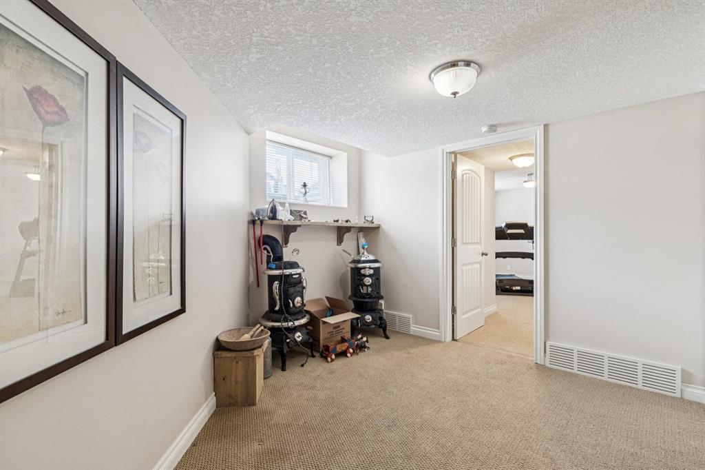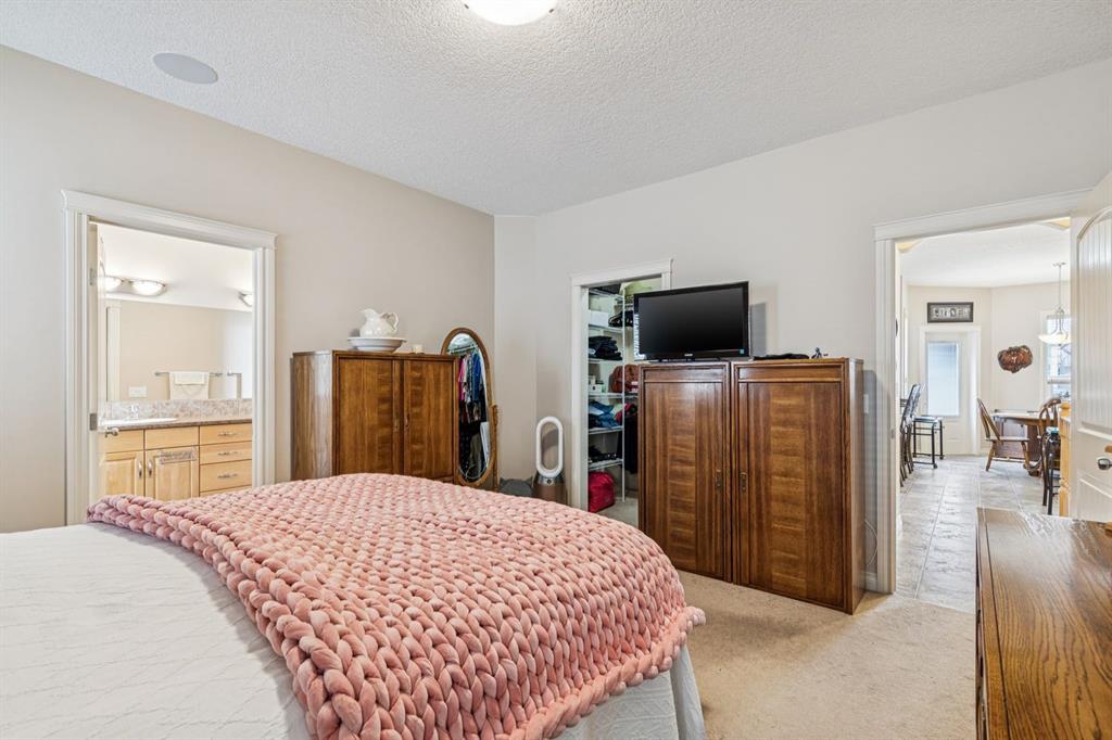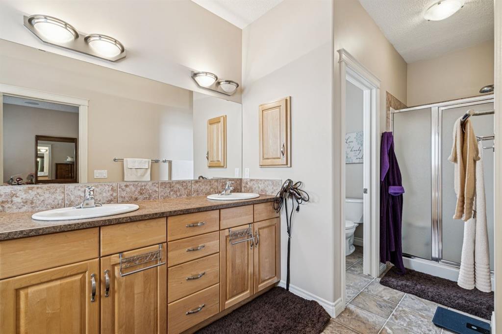 This Beautiful custom-built Fully Finished Bungalow features over 2600 sq ft of living space. Located on a large no-maintenance corner lot. The upgrades include: 9' ceilings, Built-in Entertainment shelving unit, increased attic insulation, roughed in plumbing for the basement, 60 oz carpet with 7.5lb underlay, gas line for BBQ on deck, 42" kitchen cabinets, crown mouldings, Air Conditioning and that’s just the beginning. The main floor offers a spacious kitchen and family room with cozy gas fireplace, A 3pc bath and dining area with access to the deck and 2 bedrooms or one bedroom and Office. The Primary bedroom features a walk-in closet and full 5pc ensuite with large soaker tub and 2 sinks - lots of space to start your day. The lower level is Finished with two additional large bedrooms, a 3pc bath, baseboard heating and large windows. The double attached garage has running water and also a convenient man-door to the yard. This home exudes pride of ownership and offers neutral colors throughout. This corner lot also features rare R.V. parking with a shed and patio space. This home is close to schools, greenspace and all the shopping that matters.
