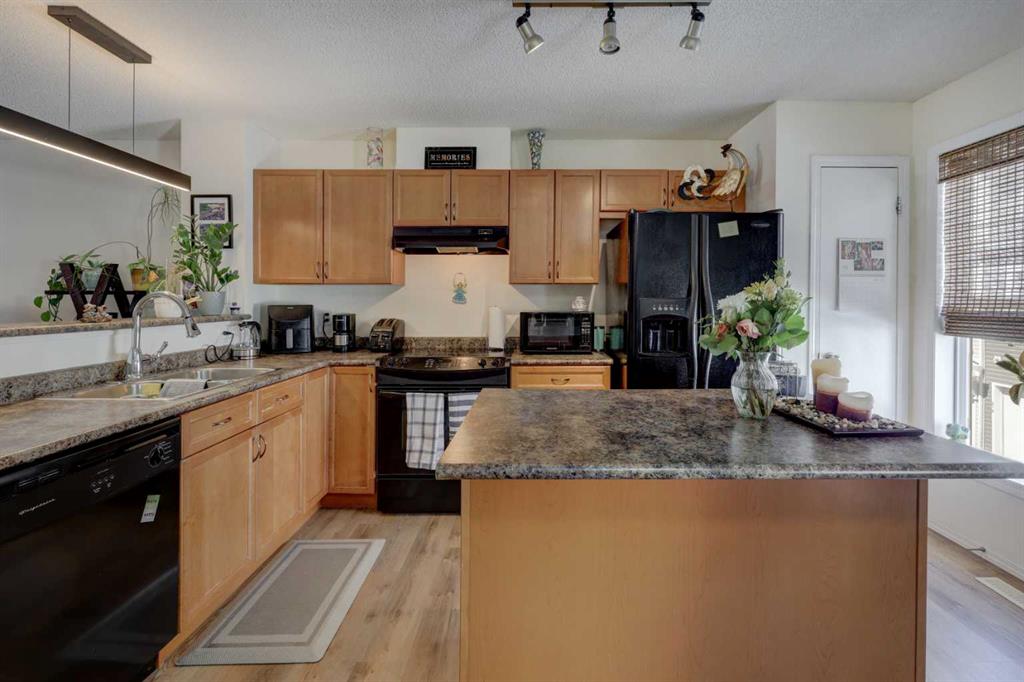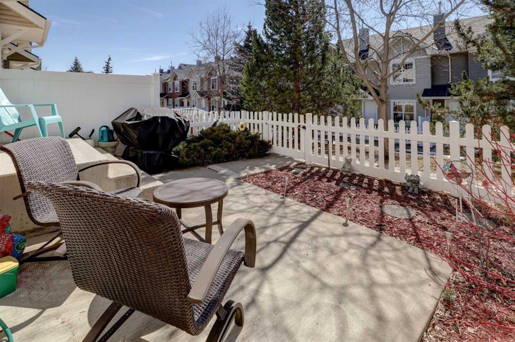 Life in Tuscany begins with a setting that connects everyday convenience with a welcoming community atmosphere. Thoughtful updates and a well-planned layout come together in this move-in ready 3 bedroom, 2.5 bathroom townhome designed to support both daily routines and relaxed downtime. Updated luxury vinyl plank flooring flows throughout the main level, creating a cohesive backdrop for an open-concept design that encourages connection. Gather in the living room where generous space and modern lighting with a fan enhance comfort while keeping the area bright and inviting. Meal preparation feels intuitive in the kitchen, where a centre prep island pairs with a peninsula offering breakfast bar seating, allowing conversations to continue while cooking. Dining takes place just steps away, maintaining easy flow without sacrificing definition between spaces. Tucked discreetly off the main area, a powder room adds everyday convenience without interrupting the layout. Upstairs, a primary retreat introduces a private 3-piece ensuite that eliminates the need to share, along with a walk-in closet that keeps everything organized and accessible. Two additional bedrooms create flexibility for family, guests or a home office, while a full 4-piece bathroom completes the upper level. Downstairs, laundry and ample storage keep seasonal items and extras neatly out of sight. Outdoor living extends to a charming front patio with sunny south exposure, where low-maintenance landscaping and a quaint white picket fence create a welcoming place to unwind or visit with neighbours. Parking remains simple with a double attached garage at the rear, while the beautifully maintained complex adds to the overall sense of pride and care with its tranquil courtyard spaces. Daily life becomes even more convenient thanks to a location within walking distance to the Tuscany Club, schools, parks, transit and the Tuscany Market featuring Sobey’s, Starbucks and a variety of shops and services. Access to 12 Mile Coulee, off-leash areas, Lynx Ridge Golf Course and the Tuscany LRT station further enhances the lifestyle, while quick connections to Stoney Trail and Crowchild Trail make commuting straightforward.