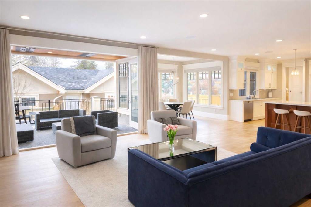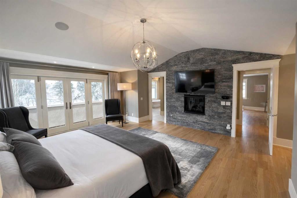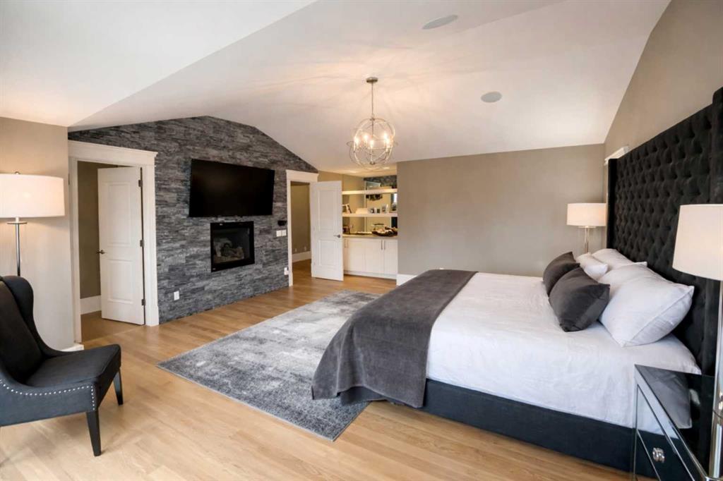 Click brochure link for more details. Stunning executive family home offering exceptional design, outstanding flow, and an abundance of natural light throughout. Beautiful curb appeal with stone and wood accents and professionally landscaped grounds set the tone for this impressive property. The main floor is designed for both everyday living and entertaining, featuring a spacious office or music room, elegant formal dining room with detailed millwork, and a bright living room with folding glass doors that fully retract to create seamless indoor-outdoor living. The covered patio includes an outdoor fireplace, overhead heating, and television for year-round enjoyment. The gourmet kitchen is a chef’s dream with professional-grade appliances, generous counter space, and two butler’s pantries. Upstairs offers four spacious bedrooms, each with its own ensuite, plus a convenient second-floor laundry room. The luxurious primary retreat features a private balcony, fireplace, spa-inspired ensuite with steam shower, and a large walk-in closet.