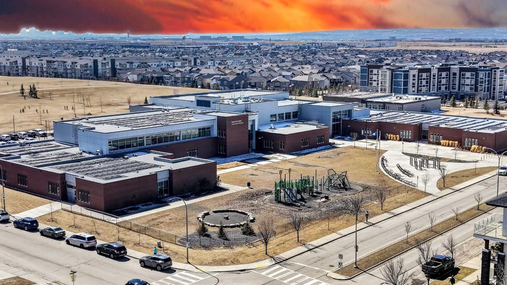 Welcome to this beautifully maintained NO CONDO FEE, CORNER UNIT home offering the perfect blend of functionality, style, and location. Situated on a desirable south-facing lot, this home is bathed in natural light, creating a warm and inviting atmosphere. When you walk in, you’ll notice the thoughtfully designed open-concept main floor. It is ideal for both everyday living and entertaining, featuring a stunning kitchen complete with upgraded cabinetry, quartz countertops, and stainless steel appliances. The home continues to impress with custom built-ins including a bench in the rear mudroom, and a versatile built-in nook - perfect as a home office. A convenient 2-piece powder room completes this level. Upstairs, you’ll find TWO SPACIOUS PRIMARY BEDROOMS, each with its own large walk-in closet and private 4-piece ensuite, separated by the convenience of upper floor laundry. The basement is ready for your future development with an egress window and bathroom rough-in. Enjoy the sunny SOUTH-FACING FENCED BACKYARD, perfect for gardening or relaxing, along with a BBQ gas line for easy outdoor entertaining. The double detached garage offers ample space for vehicles and storage, with paved alley access for added ease. Additional upgrades include CENTRAL AIR CONDITIONING and a recently installed WATER SOFTENER, adding comfort and long-term value. Location is unbeatable. Just steps from Sky Pointe Landing plaza, a major retail hub offering dining, shopping, fitness, medical services, and everyday essentials. Families will appreciate being within walking distance to both Prairie Sky School (Public K-9) and Apostles of Jesus School (Catholic K-9), with Nelson Mandela High School just a short drive away. Commuting is effortless with a bus stop only a 1-minute walk from your door, making this a highly transit-friendly location. Whether you're a first-time buyer, downsizer, or investor, this is a rare opportunity to own an exceptional property in one of Calgary’s fastest-growing communities. Book your showing today!