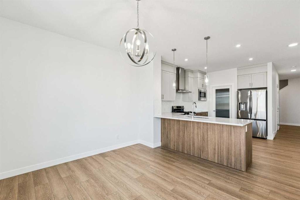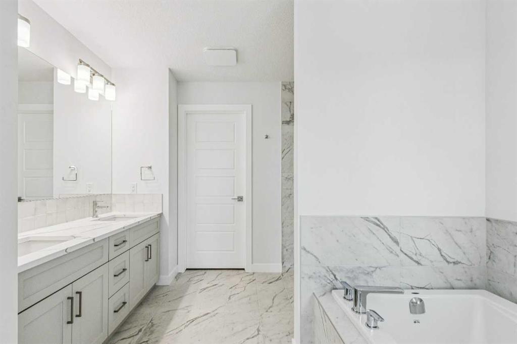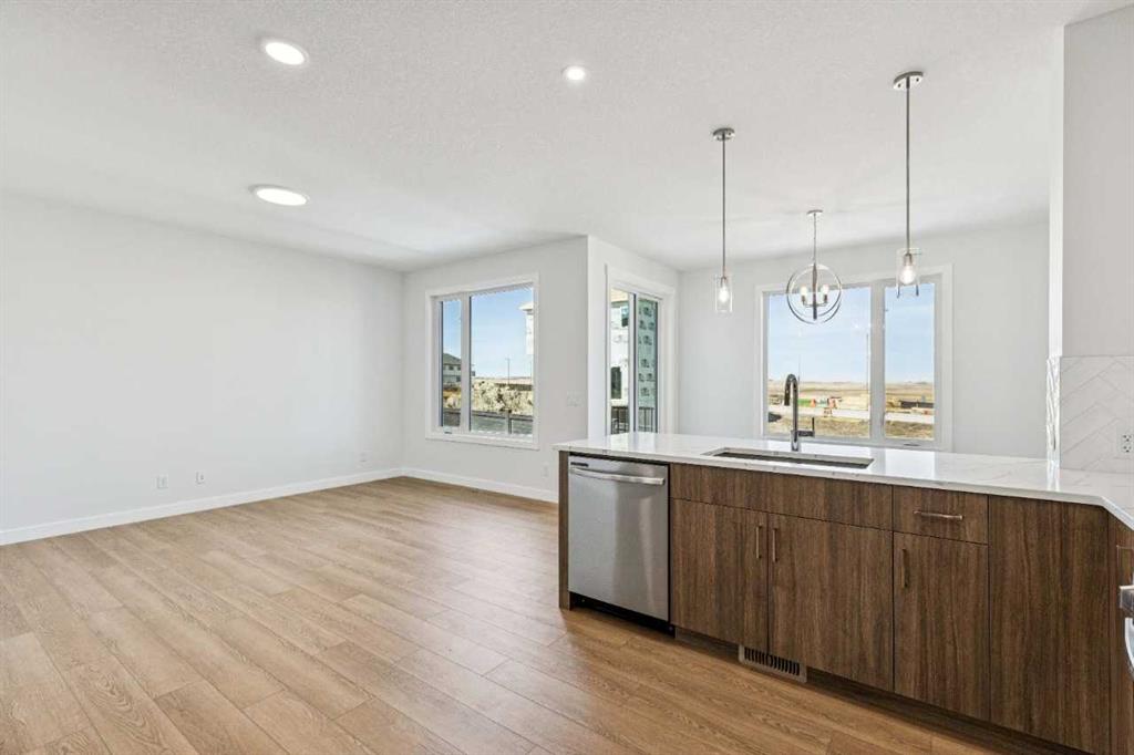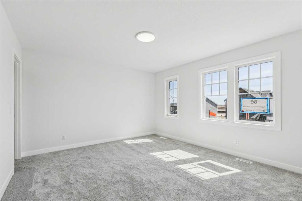Immediate possession available at 86 Keystone Creek Terrace NW. This 2,184 sq ft NuVista Homes property offers 4 bedrooms and 2.5 bathrooms with a bright, open-concept design perfect for modern family living. The main floor features a stylish kitchen with quartz countertops, premium cabinetry, and a large island that flows into the dining area and great room. A versatile flex space provides options for a home office or additional seating. Upstairs, the spacious primary bedroom includes a walk-in closet and private ensuite, complemented by three additional bedrooms, a full bathroom, a central bonus room, and convenient upper-floor laundry. Large windows throughout enhance natural light, creating a warm and inviting atmosphere. A double attached garage offers parking and extra storage. Located in a desirable community near parks, pathways, schools, and amenities, this move-in-ready home blends comfort, functionality, and modern style. Photos are representative.
