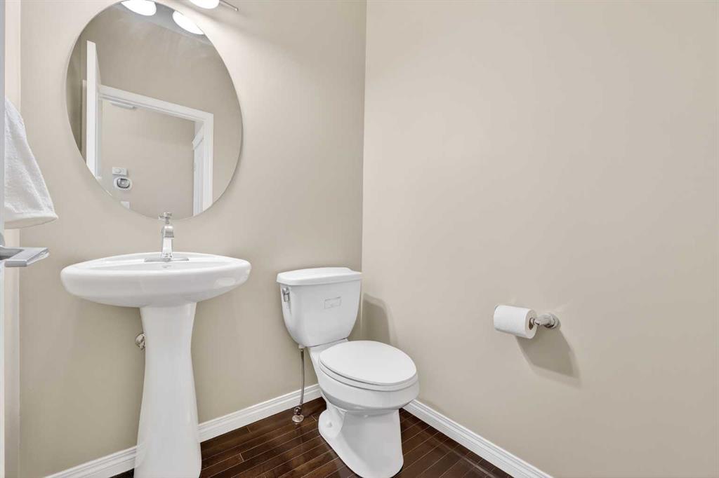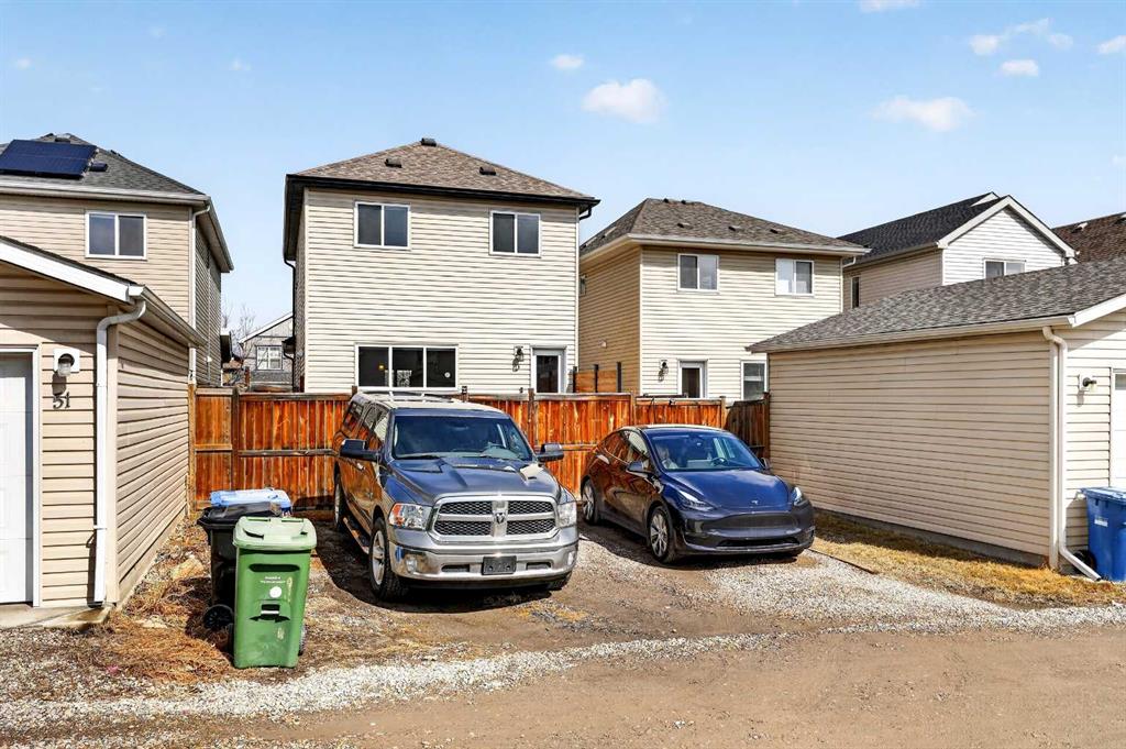 Welcome to exceptional value in Copperfield. This beautifully maintained single-family home offers outstanding curb appeal, highlighted by a charming covered front porch. Step inside to a bright, open-concept main floor filled with natural light and finished with gleaming hardwood throughout. The inviting living room features a cozy gas fireplace and flows seamlessly into the dining area and kitchen—perfect for both everyday living and entertaining. The kitchen overlooks the sunny, south-facing backyard, complete with a deck and hot tub, creating an ideal outdoor retreat. Stainless steel appliances and a spacious pantry add both style and functionality. The main floor also includes a dedicated office space—perfect for working from home—as well as a convenient two-piece powder room. Upstairs, the spacious primary suite comfortably accommodates a king-sized bed and features a walk-in closet and a well-appointed ensuite with dual vanities, a soaker tub, and a separate shower. Two additional bedrooms, a full bathroom, and the convenience of an upper-level laundry room complete the upper floor. The home also features central air conditioning. The unfinished basement offers excellent potential, with a rough-in for a future bathroom—ready for your personal touch. Ideally located just minutes from Deerfoot Trail and Stoney Trail, and close to shopping, dining, and amenities. A rear parking pad provides space for a future garage. Call your favourite realtor today to schedule a showing.