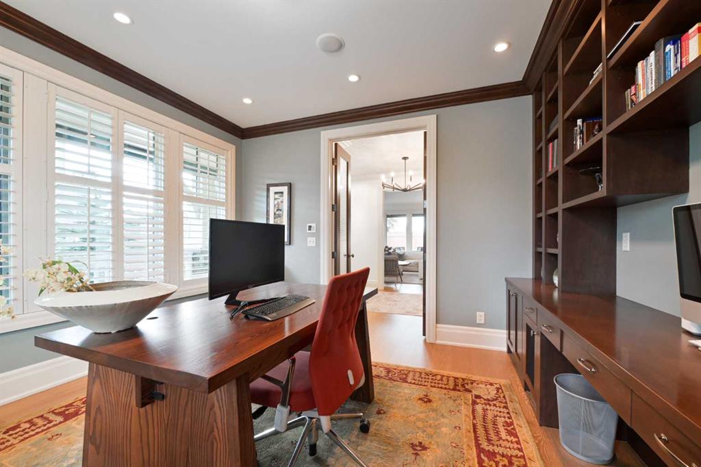** Open House Saturday May 2nd from 2:30pm-4:00pm! ** Set discreetly on a private corner lot, this exceptional custom build by Mission Homes is a study in timeless design, refined craftsmanship, and elevated living. From the moment you arrive, the home makes an impression with its grand entry, elegant main-floor office, and luminous living spaces that frame the sunny south backyard. The kitchen, with its inviting breakfast nook, anchors the home beautifully, while the formal dining room and spacious mudroom add both sophistication and function to the main level.