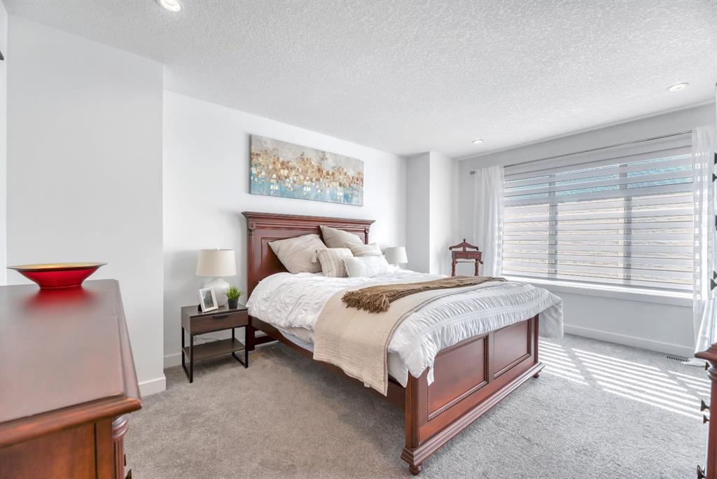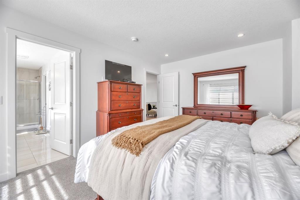 Welcome to this stunning semi-estate home in the highly sought-after community of Legacy—where style, space, and functionality come together to create the perfect family home. From the moment you walk through the front door, you’ll be impressed by the bright, airy feel and exceptional attention to detail throughout this immaculate 2,393 sq ft residence. Flooded with natural light, the main floor offers a spacious and thoughtfully designed layout ideal for both everyday living and entertaining. The chef-inspired kitchen features crisp white cabinetry, quartz countertops, a gas cooktop, built-in wall oven and microwave, and a convenient walk-through pantry that seamlessly connects to the open mudroom/front entry. Very cohesive and large family friendly design! The open-concept living and dining areas create a welcoming space for gatherings, all enhanced by the home’s clean, modern aesthetic. Upstairs, you’ll find an incredible layout with four generously sized bedrooms and a massive central bonus room, perfect for family movie nights or a kids’ retreat. The primary suite is truly a standout—offering an expansive bedroom, a luxurious 5-piece ensuite complete with dual vanities, a jetted soaker tub, and an oversized shower. The walk-in closet conveniently connects through to the laundry room, which includes a wash sink for added functionality.