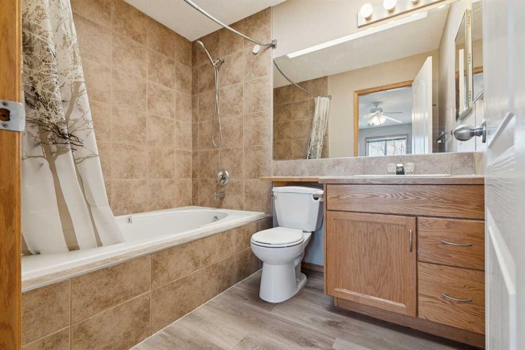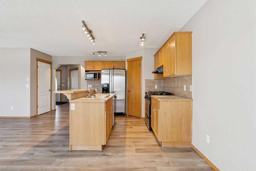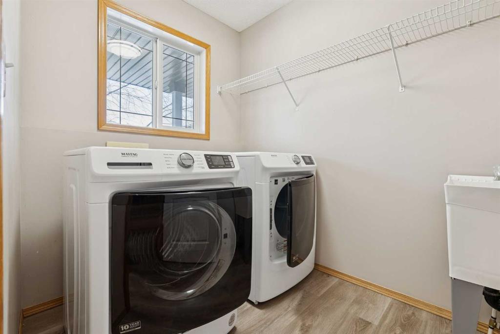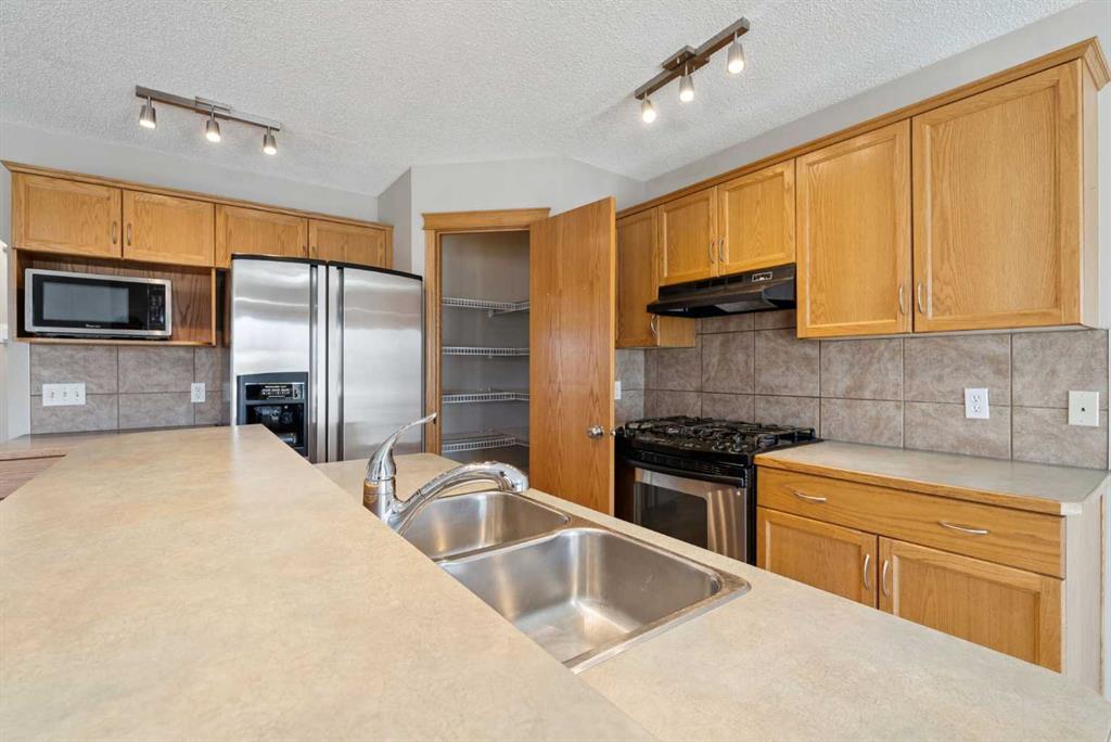 The bright and inviting main floor offers an open-concept layout that’s ideal for both daily living and entertaining. Enjoy a cozy corner gas fireplace in the living room, a well-appointed kitchen with an eating bar and corner pantry, and a dining area with direct access to the backyard deck — perfect for summer BBQs and indoor-outdoor living. Large windows throughout fill the home with natural light, while main floor laundry and a convenient 2-piece powder room add to the home’s thoughtful design. Recent updates, including newer flooring, patio door and fresh paint, create a clean, move-in ready feel. Upstairs, the spacious primary bedroom features a walk-in closet and a private ensuite with a beautiful skylight, creating a bright and relaxing retreat. Two additional bedrooms and a full 4-piece bathroom complete the upper level. The fully finished basement offers even more living space with a generous rec room, an additional bedroom, a 3-piece bathroom, and extra storage—perfect for growing families or hosting overnight guests. Outside, you’ll love the large backyard with plenty of space to relax, entertain, or play. The generous deck includes a BBQ gas line and room for patio furniture, while the yard offers endless potential for gardening, a fire pit, or outdoor activities. The fully insulated and sheeted double detached garage with epoxy-coated flooring adds both convenience and durability. Ideally located close to schools, parks, shopping, walking paths, and major commuter routes, this home offers a fantastic lifestyle in a welcoming, family-friendly community.