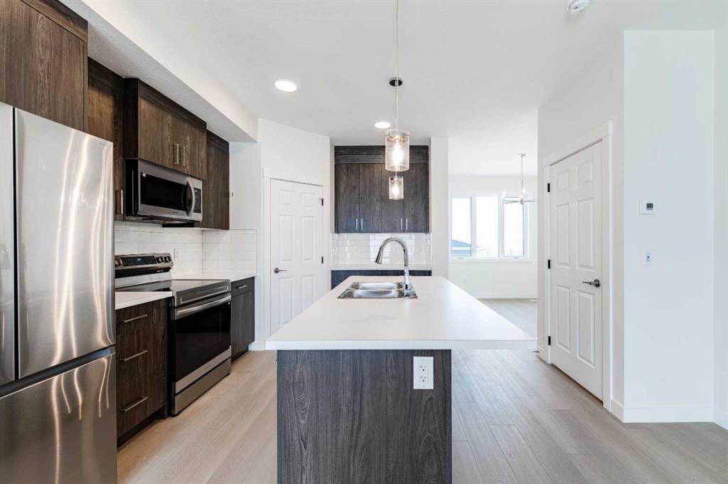 Welcome to 1921 McCaskill Drive, a brand new home by Creation Homes offering space, flexibility, and future rental potential in an extremely convenient location. This home features 4 bedrooms, 3.5 washrooms, and approximately 1,367 sq ft above grade, with 668 sq ft on both the main and second floors, plus a fully finished basement offering about 631 sq ft of additional living space. The basement includes a bedroom, rough-ins for a future kitchen, and a separate entrance, making it ideal for future rental income or extended family living. The property also includes a 2-car detached garage, a good-sized backyard, and faces a green space while backing onto a walking trail, providing added privacy and outdoor enjoyment. Located close to schools of all levels, coffee shops, pharmacies, a medical clinic, and a fitness center — all within a quick 2-minute drive. Enjoy unbeatable connectivity with just 7 minutes to CrossIron Mills, 7 minutes to Airdrie, 15 minutes to Calgary International Airport, and only 30 minutes to Downtown Calgary, all made easy with fast access to Highway 2.