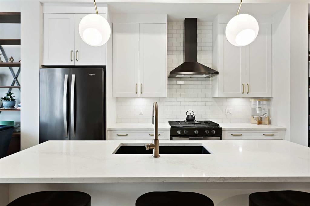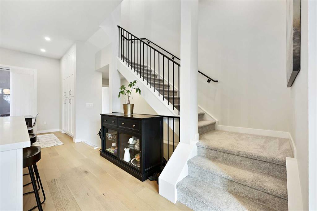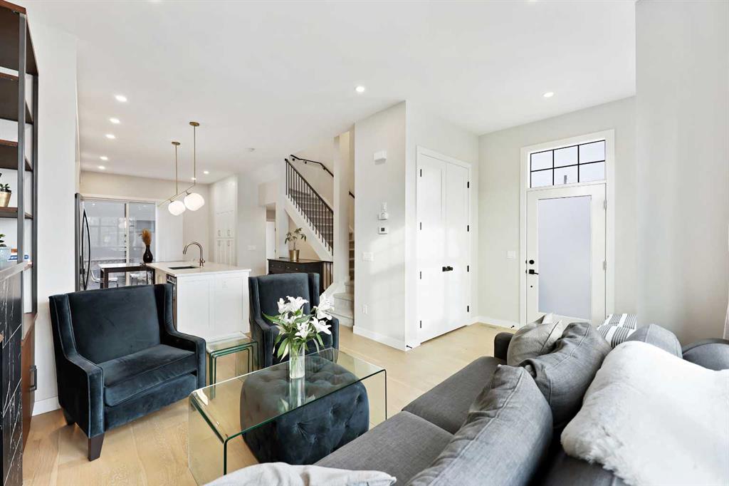 In Altadore, it’s rare to find the perfect blend of an inner city lifestyle and true outdoor living, a private backyard and a garage, but this home checks all of the boxes! Set in a location that truly maximizes lifestyle, you are just minutes from the boutiques, dining, coffee shops, and gyms of Marda Loop. Outdoor enthusiasts will love having Sandy Beach and endless pathways nearby! This community has top rated schools, convenient transit options and access to major roads, making commutes a breeze. This corner unit townhome delivers elevated style, thoughtful upgrades, and urban convenience all wrapped in charming brick architecture. Inside, 10 ft. ceilings and oversized windows create a bright, sophisticated atmosphere. Hardwood floors flow through the open main level, where a welcoming living room centers around a sleek gas fireplace. The dining space is designed for entertaining, while the chef’s kitchen stands out with quartz counters, premium appliances including a gas range, a sleek backsplash, and a rare upgrade, an additional full pantry! This level is complete with a 2 piece powder room, just off the kitchen. Upstairs, the primary retreat includes a generous walk-in closet with upgraded shelving and a serene ensuite featuring dual sinks and heated floors, an everyday luxury. A second spacious bedroom and convenient laundry complete this level, with remote controlled ceiling fans in the bedrooms adding extra comfort year round. The top floor flexes to suit your lifestyle! A family room, home gym, office, or additional bedroom, enhanced with motorized electronic blinds and a bar rough-in. From this floor, you have direct access to your private rooftop patio showcasing sweeping city and mountain views. A must see for the best sunsets! The fully developed lower level extends your living space with a recreation area, office niche, another full bedroom, and a 4-piece bathroom. This home also includes; custom closet organizers, Hunter Douglas premium blinds, rough ins for air conditioning and Vacuflo that all add to the everyday function and finish. Step outside to one of Altadore's most desirable features, a private, fully fenced backyard, perfect for pets, play, or summer nights, complete with a gas line for your barbecue. A single detached garage offers secure parking and storage. This is the best of Altadore! Urban energy, walkability, modern living, without sacrificing space, privacy, or comfort. Welcome home.
