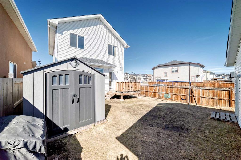 Welcome to this spacious and well-maintained home situated on a desirable corner lot in the heart of Taradale. Offering over 2,000 sq ft of thoughtfully designed living space, this property is perfect for large families or investors alike. The upper level features 4 generously sized bedrooms, including 2 primary bedrooms, providing exceptional comfort and privacy. The main floor boasts a bright and inviting layout with a large living room, an additional bonus sitting area, and a beautifully designed kitchen complete with ample cabinetry, island seating, generous counter space, and a functional modern layout ideal for everyday living and entertaining. Natural light fills the home, creating a warm and welcoming atmosphere throughout. The fully finished basement includes an illegal suite with a separate walkout entrance, spacious family room, open kitchen area, 4-piece bathroom, and a massive bedroom—offering excellent potential for extended family or rental income. One of the standout features of this property is the detached triple car garage with paved back lane access, ideal for multiple vehicles, storage, or workshop use. The oversized backyard also includes a built-in storage shed and plenty of outdoor space for family enjoyment. Located in a prime location within walking distance to Saddletowne Circle shopping, major banks, Safeway, medical clinics, the Calgary CTrain station, and schools of all levels. This rare opportunity combines size, functionality, and convenience in one exceptional package. Don’t miss your chance to own this impressive home—book your private showing today!