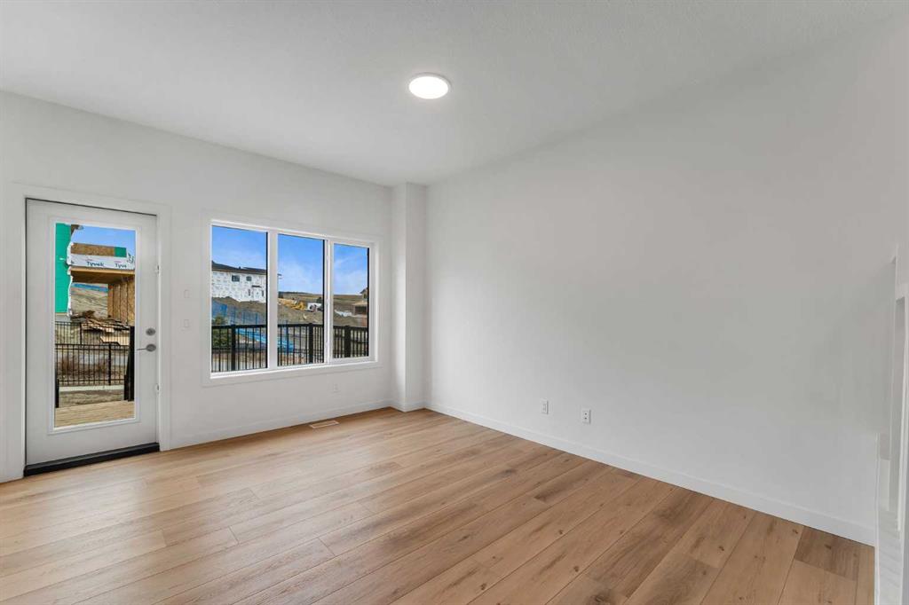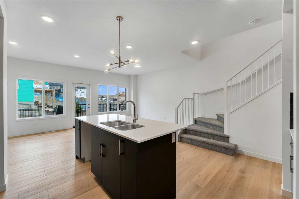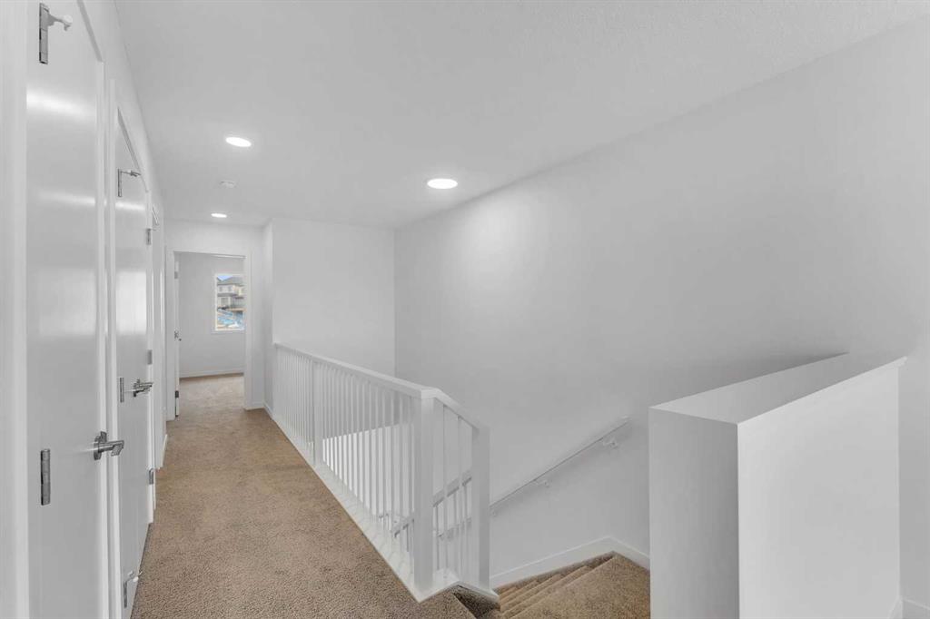 Immediate possession is available for the Metro Duplex 20 by award-winning Cantiro Homes. Situated on a desirable lot backing onto a walking path in the scenic hilltop community of West Hawk, Cochrane, this home is ideal for first-time buyers, investors, or those seeking to right-size. Step inside to the open-concept main floor, which features a spacious kitchen with a large island, stylish slate cabinetry, quartz countertops and a sleek stainless steel appliance package. The kitchen seamlessly connects to the living room and dining room, where bright windows flood the space with natural light. Step outside to your back deck and enjoy those summer evenings. Rounding out the main floor is a mudroom off the double-attached garage and a powder room. Upstairs, the efficient layout includes a comfortable primary bedroom with a dedicated ensuite bathroom. Two additional well-sized bedrooms, a bonus room, and a full bathroom with convenient upstairs laundry complete the upper level. The unfinished basement is a blank canvas waiting for your design ideas. West Hawk is a new, 110-acre master-planned community in northwest Cochrane, Alberta, designed for nature-inspired living with 27 acres of environmental reserve, scenic Rocky Mountain views, and 5 km of pathways. Situated along Highway 1A, it offers quick mountain access and proximity to Calgary, making it a great place to call home.