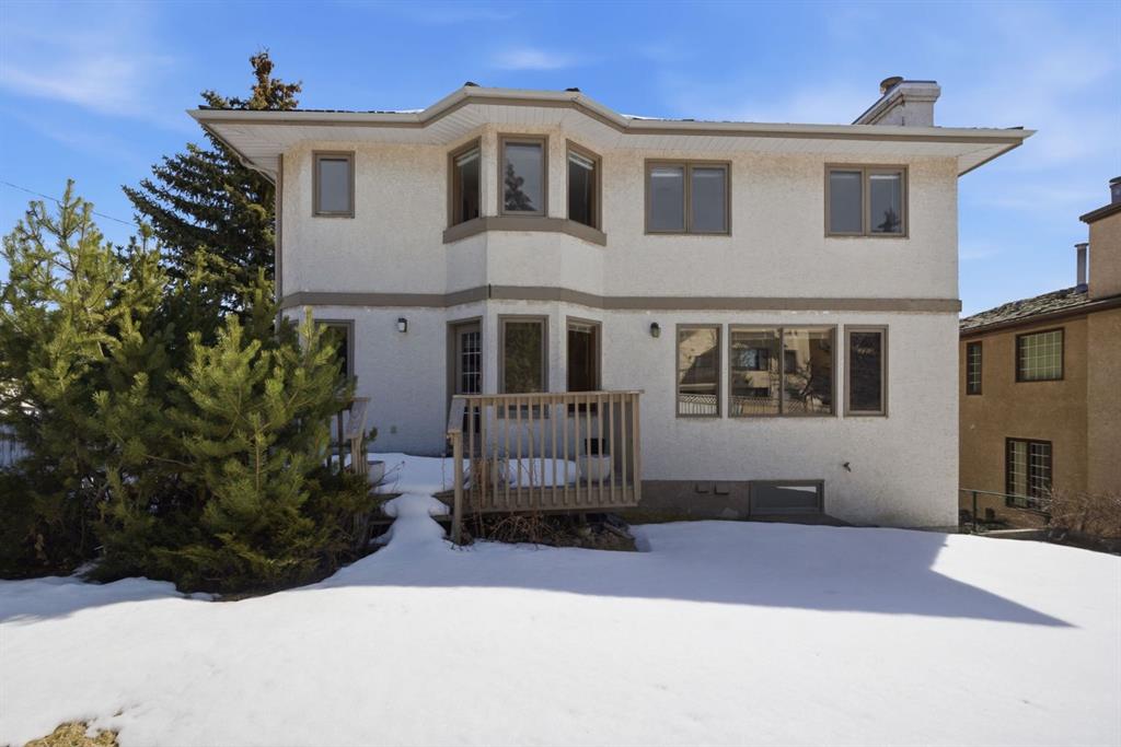 Welcome to this spacious two-storey home that is ideally located on a large corner lot in an exclusive enclave in the desirable community of Edgemont. Offering over 2,400 sq ft, 5 bedrooms, hardwood flooring on both levels and a layout that’s ready for a fresh vision. Step inside and you’ll fall in love with the functional layout, which boasts vaulted ceilings and large windows that bring in plenty of natural light. The front living room is spacious and bright with hardwood floors, and the formal dining room is a great space for hosting family dinners and holidays. The kitchen is centred around an island and connects easily to the breakfast nook and family room. A wood-burning fireplace and built-in shelving make this a comfortable space to unwind at the end of the day. There’s also a main floor bedroom/office along with laundry area and a 2-piece bath. Upstairs, you’ll find four good sized bedrooms, including a primary suite with a walk-in closet and ensuite. The basement is unfinished and ready for your development ideas. Recent updates include hardwood flooring, most of the window glass has replaced, Poly B removal, a radon mitigation system installed, and central air conditioning added for your comfort during those warm summer months. Outside, the spacious corner lot gives you a spacious yard with beautiful, mature trees and a double attached garage. This great home is walking distance to Edgemont school and has great public transportation options including 2 bus stops nearby and the Crowfoot and Dalhousie c-train stations just minutes away. Edgemont is one of northwest Calgary’s most established communities, known for its schools and convenient access to major routes and the stunning Nosehill Park and several great shopping areas!
