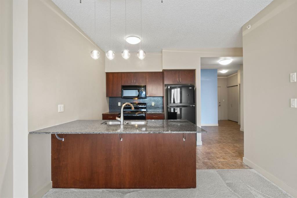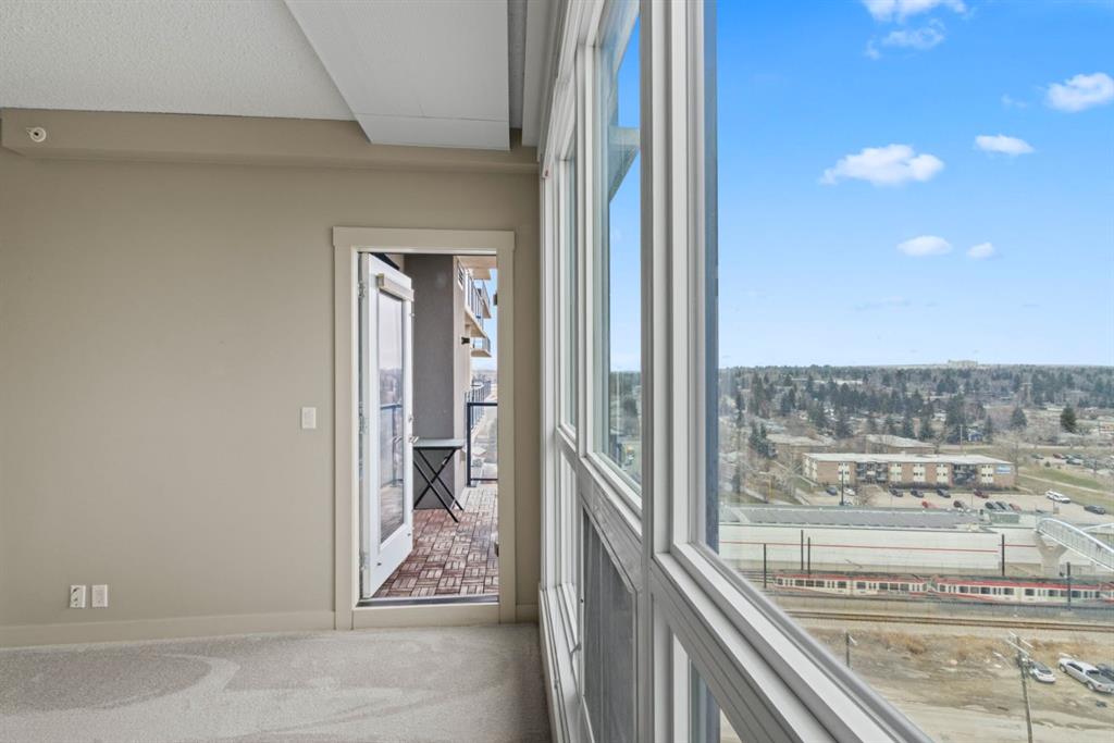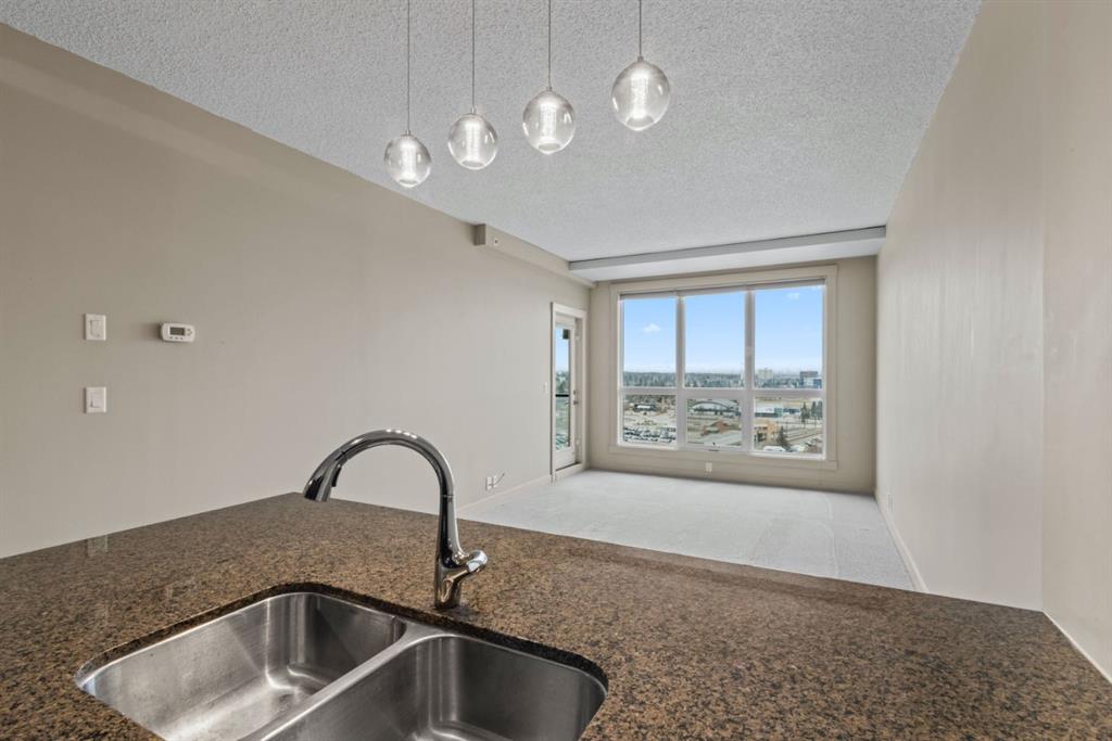 Welcome to the London at Heritage Station, where convenience, comfort and a touch of city energy all come together. This stylish one bedroom plus den offers a bright, open layout with just the right amount of space to live, work and unwind. Step inside and you’ll immediately notice how the kitchen flows effortlessly into the living area, creating a setup that feels both functional and inviting, perfect for everyday living or hosting friends. The kitchen is finished with granite countertops, dark cabinetry and a modern backsplash, giving it a clean, polished look. The living room opens onto your private balcony with a gas line, a great spot to relax and take in the views that stretch toward downtown and the mountains in the distance. The primary bedroom is generously sized and easily fits a king bed, complete with a walk through closet that leads to the main bathroom for added convenience. The den offers flexible space that can be used as a home office, reading nook or even a dining area depending on your needs. This well managed building is known for its unbeatable access and everyday ease, with 24 hour security, concierge service, secure package handling, heated underground parking and shared amenities including a rooftop patio and sunroom. What truly sets it apart is the direct indoor connection to shops, restaurants, Save On Foods and the Heritage LRT station, making commuting downtown or getting daily errands done incredibly simple. If you’re looking for a low maintenance home in a location that keeps everything within reach, this is one that delivers.