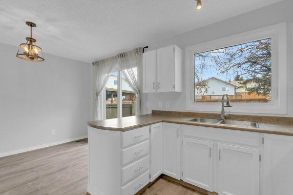 OPEN HOUSE SUN APRIL 19th: 12 -3PM. This home checks the boxes! NO CONDO FEES! Many upgrades which include many brand new windows, and a brand new stainless steel fridge and stove, dishwasher in 2019, washer in 2021 and dryer in 2020. The roof shingles were new in 2019 and the furnace in 2020. The hot water tank was replaced in 2022. There are upgraded laminate floors, upgraded bathroom vanities and a beautiful new Bathfitter tub & surround in the upstairs bathroom. With LED lights, a fresh coat of paint throughout, and so many updates, this property will provide a safe and secure place to call home for years to come! There are a total of 4 bedrooms with one in the basement plus a recreation room that just needs the ceiling finished. Enjoy the big south facing deck off the new patio doors, and a big pie-shaped backyard with a covered pergola. The garden shed is powered with electricity. Previously, the occupants parked two cars off street behind the back fence, but there is plenty of room to build a garage or plan other off street parking on the lot, plus there is on street parking as well. The living room features a cozy woodburning fireplace and the primary bedroom features a vaulted ceiling and a modern ceiling fan. Located on a quiet cul-de-sac across from a huge park space, you'll appreciate that the community centre, schools, churches, playgrounds, shops, and bus are all within walking distance. Close to South Glenmore Park, Costco, Southcentre and so much more with easy access to the Stoney Trail ring road.