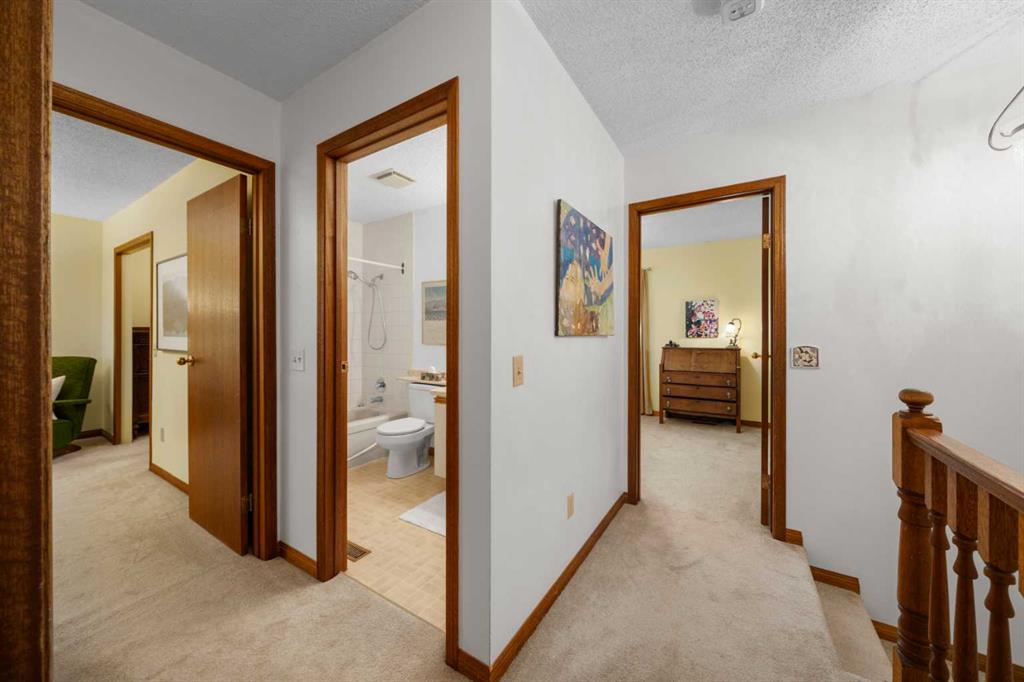 Distinguished brick townhome in the heart of Briar Hill offers a unique blend of inner city convenience with a walk down the street to an undisturbed natural area surrounded by mature trees and walking paths. This 3 bedroom, 2.5 bath home includes both front yard, large courtyard/patio in rear and underground parkade with 2 dedicated parking stalls plus tons of storage in parkade as well as basement storage. Main floor features welcoming foyer, living room with lovely bay window, brick wood-burning fireplace with hearth and mantle, powder room, kitchen and dining room opening with patio door. Upper floor has generous bedrooms, main bath and ensuite bath off primary bedroom. Lower level is partially finished and includes laundry area, small den/studio space and storage room. Long term owner has meticulously maintained this home and added many safety features including high end fire and CO detectors as well as tested for radon. Orchard Place has friendly neighbors, excellent management and a location second to none. Walking distance to North Hill, Jubilee, LRT, SAIT and Alberta University of the Arts, Kensington shops, cafes, schools, outdoor pool just to name a few. Privacy and convenience! Calgary's inner-city NW communities are unbeatable! Check it out!