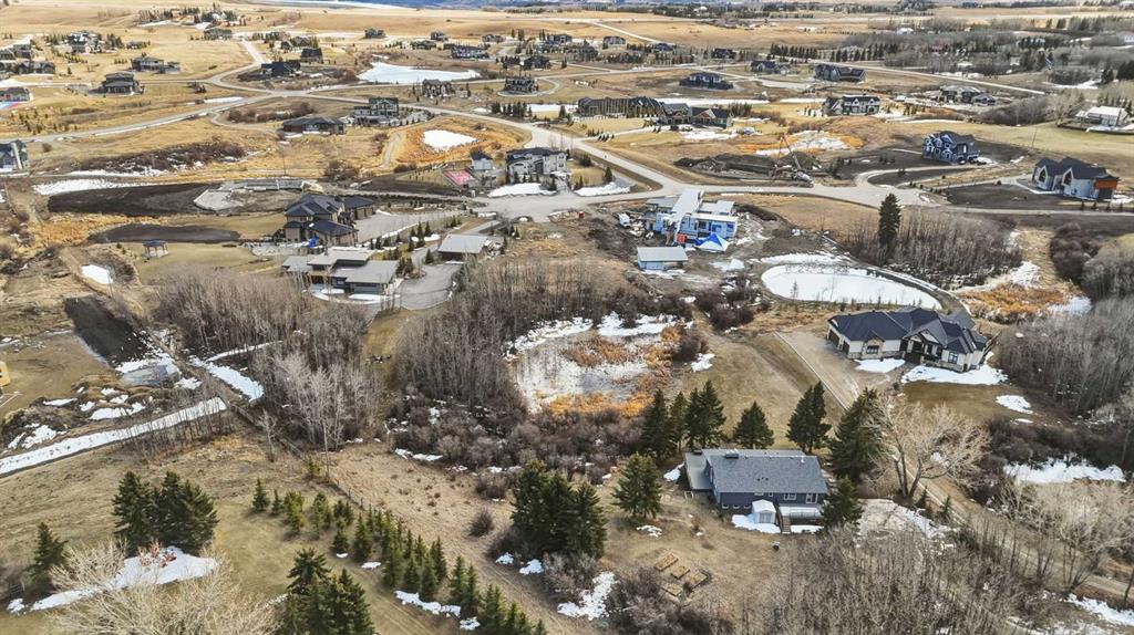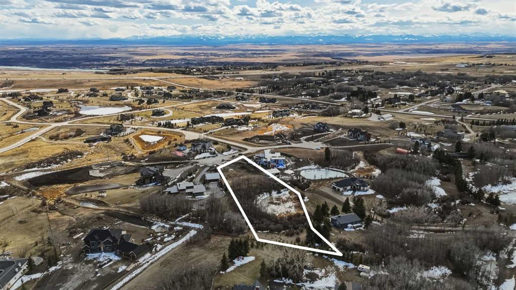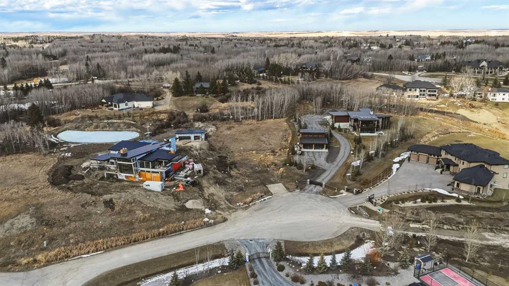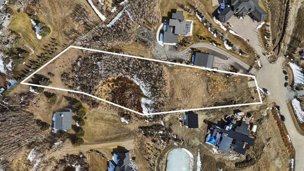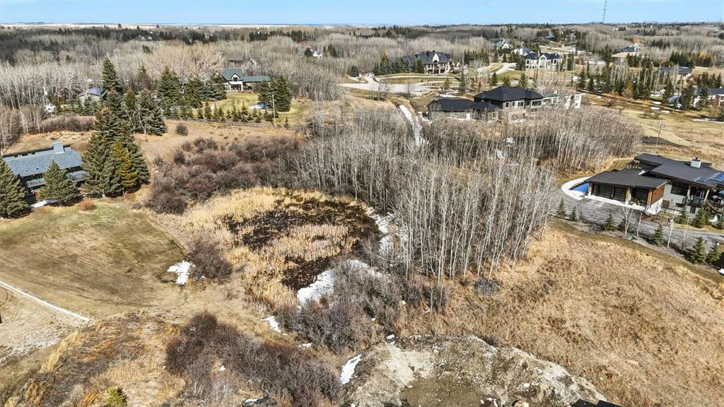 Rare opportunity to secure a 2 acre estate lot in one of Bearspaw’s most established and sought after cul de sacs. Surrounded by 3 to 4 million dollar homes, this is one of the last remaining parcels of its kind, offering the space, privacy, and setting to build a true custom estate just minutes from Calgary. The lot is beautifully treed with a strong mix of open and private areas, giving you flexibility in design and positioning. There is an existing pond that can be incorporated into a landscaped water feature or modified to expand usable yard space. Positioned correctly, a future build on the north side of the lot would capture southwest exposure, mountain views, and all day sun. The property is connected to the Bearspaw water co op, providing a reliable and cost effective water solution, which is a major advantage for acreage living. Septic will be required, as is typical for the area. Ideal for buyers looking to build in a proven luxury location without compromise, close to Calgary with access to top rated schools, amenities, and major routes, while still offering the privacy and lifestyle Bearspaw is known for. Opportunities like this are limited, especially in established pockets like this. Select images have been enhanced using AI to illustrate potential build and landscaping concepts and are intended for visualization purposes only.
