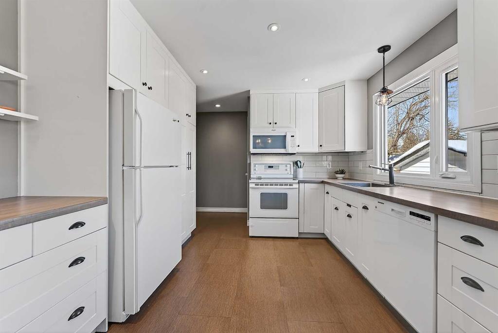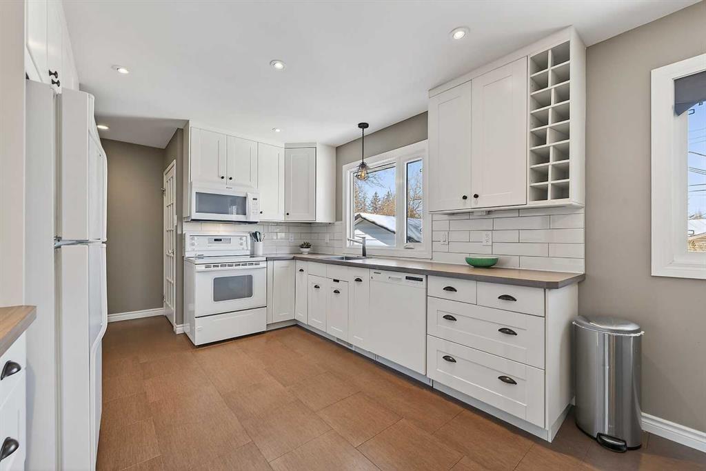 ***Open House Sunday, April 19; 12:00 - 2:00*** Stress-free living starts here, with a long list of major updates already taken care of. A newer (2016) roof, brand new windows, a new furnace and hot water tank, plus updated sewer and water lines means the heavy lifting of homeownership has already been done, leaving you free to focus on making the space your own. Inside, natural light pours through large south-facing windows, reflecting beautifully off the original hardwood floors and creating a warm, inviting main living space. The updated kitchen offers a modern touch, while the adjoining eating area gives you clear sightlines to the backyard, perfect for keeping an eye on kids as they play. Step outside and enjoy a quiet, family-friendly cul-de-sac where kids can safely ride bikes, explore nearby parks, or play with neighbours. The pie-shaped lot provides a spacious backyard ideal for gatherings, while the oversized single garage keeps vehicles and gear organized. Upstairs, generous bedrooms are centered around a well-appointed 4-piece bathroom, with the option to easily convert to a 5-piece layout thanks to the already upgraded shower and toilet. Downstairs, unwind in your own private retreat featuring a cozy fireplace, a large rec room for family time or workouts, and even a sauna to support your health and wellness goals. All of this within walking distance to schools, off-leash parks, and local shopping. A well-cared-for home in Southwood where the big-ticket items are done, so you can simply move in and enjoy. Don't wait, call today for your private viewing!