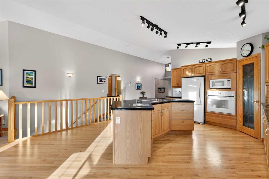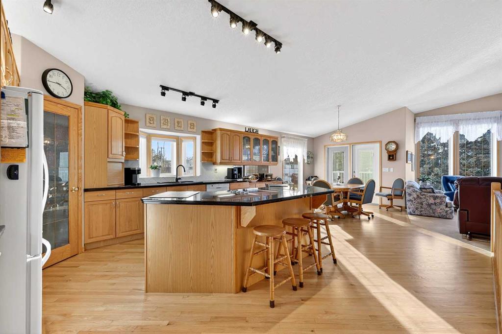 2 GARAGES - FULLY DEVELOPED WALK OUT - RV PARKING! This BUNGALOW is a contractor built personal residence that is thoughtfully designed, solidly constructed, and meticulously maintained. It is perfectly situated on large CORNER LOT in a desirable, mature neighborhood offering a total of 2983.7 sq ft of above & below grade developed living space, 2 GARAGES, RV PARKING, VAULTED CEILINGS, CENTRAL A/C, multi-zoned IN-FLOOR BOILER HEAT SYSTEM, loads of NATURAL LIGHT, abundant STORAGE, CENTRAL VACUUM, and WALK OUT basement! From the moment you step into the heated tile entrance, you are invited into a bright, open-concept floor plan characterized by soaring vaulted ceilings and an abundance of natural light. You seamlessly transition onto hardwood floors and into the gorgeous open living area that serves as the heart of the home. Here in the kitchen, you’ll find a massive granite top island with built-in cooktop, ample cabinetry, corner pantry, and full suite of appliances which then flows into the dining area designed for large family gatherings. Step out garden doors onto the tiled balcony, the perfect perch for morning coffee, evening cocktail and a GAS BBQ for summer grilling. The carpeted living room boasts floor-to-ceiling windows equipped with REMOTE-CONTROLLED BLIND SYSTEM and a GAS FIREPLACE creating the perfect spot for a cozy evening. Set to the side, the main primary retreat is equally as impressive, offering space for king-sized furniture, huge WALK-IN CLOSET, and well-appointed FOUR-PIECE ENSUITE with relaxing JETTED TUB. Completing the main level is the bright, dedicated Office at front, convenient two-piece guest bath, and main floor laundry room with 1 piece bath. There is direct access from laundry room to the double attached garage, which stays toasty year-round thanks to in-floor heating system. The lower level is a FULLY DEVELOPED WALK-OUT that feels like a natural extension of the bright upper floor. It features a massive rec/family room with custom wood entertainment center perfect for movie nights and additional space for game table or home gym. Two additional large bedrooms and a three-piece bathroom provide plenty of space for family or guests, while another versatile room offers the potential for a fifth bedroom, hobby or office space. Storage is never an issue here, with a dedicated room featuring built-in shelving and a chest freezer, with yet another storage room tucked beneath the stairs. The exterior of the property is just as impressive as you step out through garden doors onto the covered patio out to a landscaped yard, complete with mature trees and flower beds, and an underground sprinkler system to keep the grounds lush. Car enthusiasts, hobbyists, or tradesmen will be thrilled by the additional detached heated single garage with alley access, complimented by paved RV parking pad eliminating additional storage fees. MOVE-IN READY with QUICK POSSESSION available! Note: owner has the only neighboring vacant lot for sale as well.