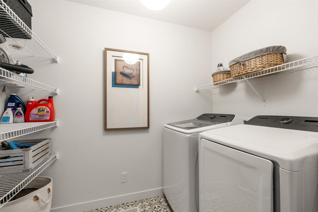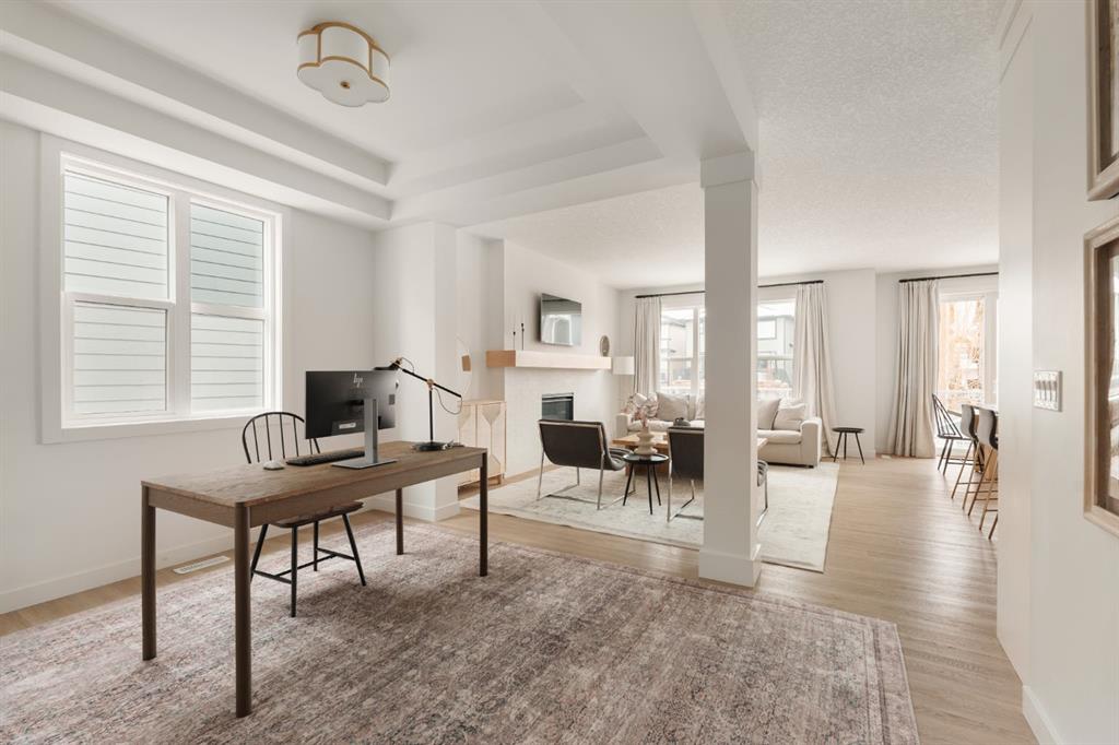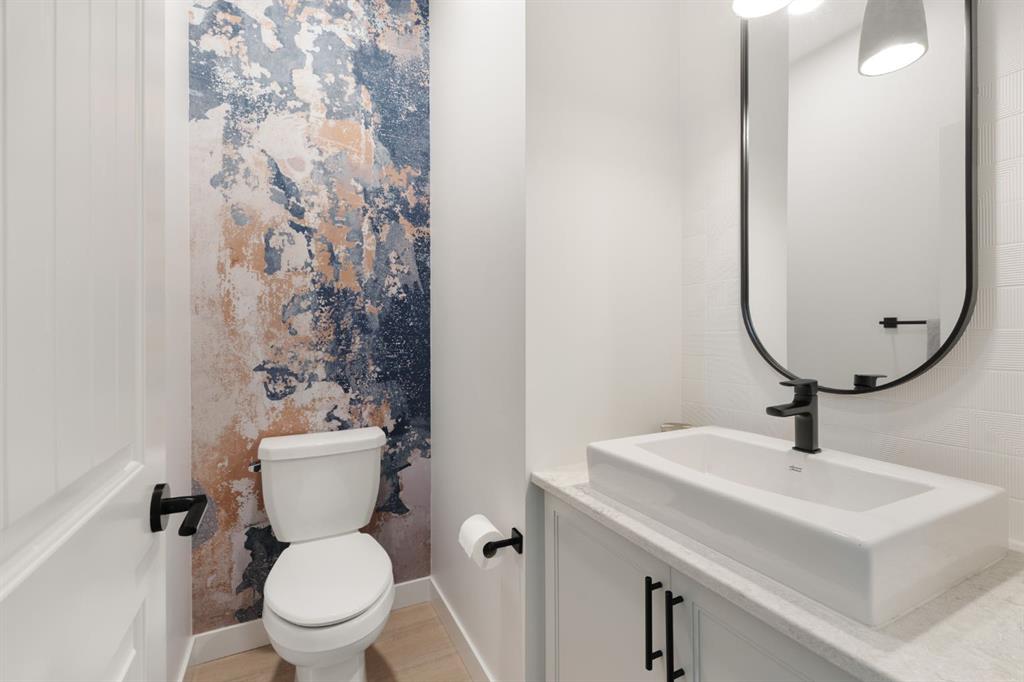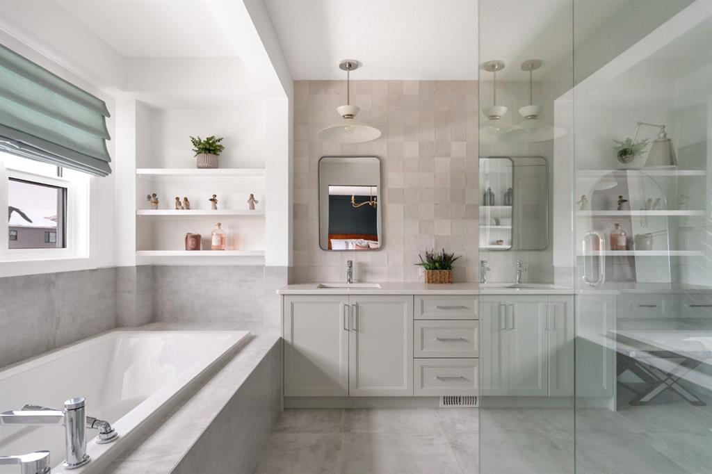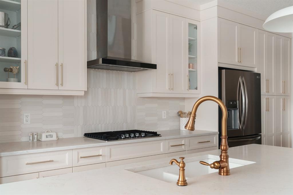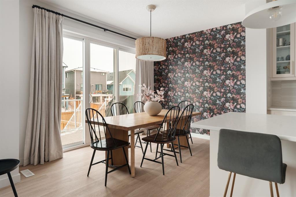 Welcome to this stunning, fully finished walkout home in the highly sought-after community of Cranston’s Riverstone, offering over 3,450 sq ft of thoughtfully designed living space and exceptional upgrades throughout. From the moment you step inside, you’re greeted by a spacious front entrance and a striking open-to-below staircase that sets the tone for this elegant home. Luxury vinyl plank flooring flows through the main floor, featuring a versatile formal dining room with a sophisticated double tray ceiling—perfect for entertaining or easily used as a home office or flex space. Large windows flood the entire main level with natural light, creating a bright and inviting atmosphere. The heart of the home is the open-concept living area, highlighted by a beautiful gas fireplace with white brick surround and classic mantel. The adjacent dining area flows seamlessly into the chef-inspired kitchen, complete with a large central island, extended-height cabinetry, quartz countertops and upgraded stainless steel appliances including a gas cooktop, range hood, wall oven, and built-in microwave. A bar fridge and dedicated coffee bar nook add both function and luxury, while ample cabinetry provides exceptional pantry storage. A well-designed mudroom with built-ins and a stylish designer half bath complete the main floor. Custom lighting throughout the home adds a modern, elevated touch. Upstairs, the elegant open spindle and oak staircase leads to a spacious bonus room perfect for family movie nights. The upper level laundry room is both practical and stylish, featuring designer tile flooring and abundant linen storage. Two generously sized bedrooms are situated at the front of the home and share a well appointed 4-piece bathroom. The primary retreat is a true sanctuary, featuring a moody, sophisticated ambiance accented by a statement chandelier. The luxurious 5-piece ensuite includes dual sinks, a soaker tub, makeup vanity and an oversized fully tiled shower, along with a massive walk-in closet. The professionally finished walkout basement, completed by the builder, offers incredible additional living space with a large open recreation area, a fourth bedroom, a full 4-piece bathroom, as well as extensive storage. Step outside to enjoy the beautifully designed outdoor spaces. The upper fun span deck features durable finishes and sleek glass railing, with stairs leading to the lower level. The private patio below is already equipped with hookups and drainage for a future hot tub. The large northwest-facing backyard provides plenty of afternoon sun and includes a charming storage shed. This home also comes equipped with air conditioning and a water softener. Ideally located, this home offers views of Cranbrook Pond and the Bow River and is just steps from a playground, surrounded by scenic walking paths and natural reserve areas. With easy access to Deerfoot Trail, as well as nearby schools and shopping, this location perfectly balances convenience and nature.
